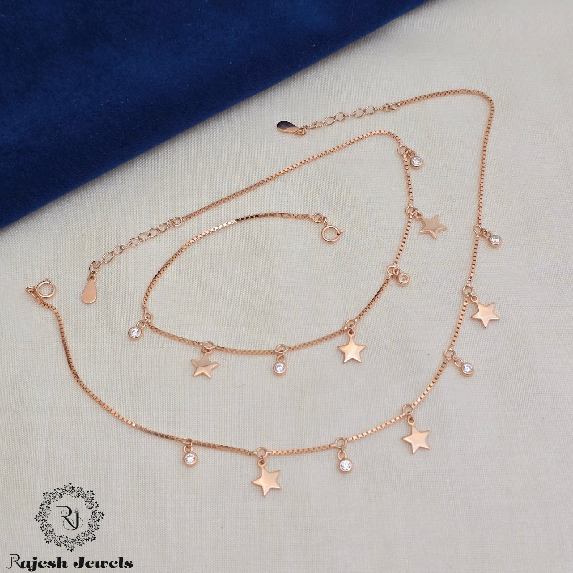 92.5 Pure Sterling Silver Anklets Studded With Semi Precious Stones