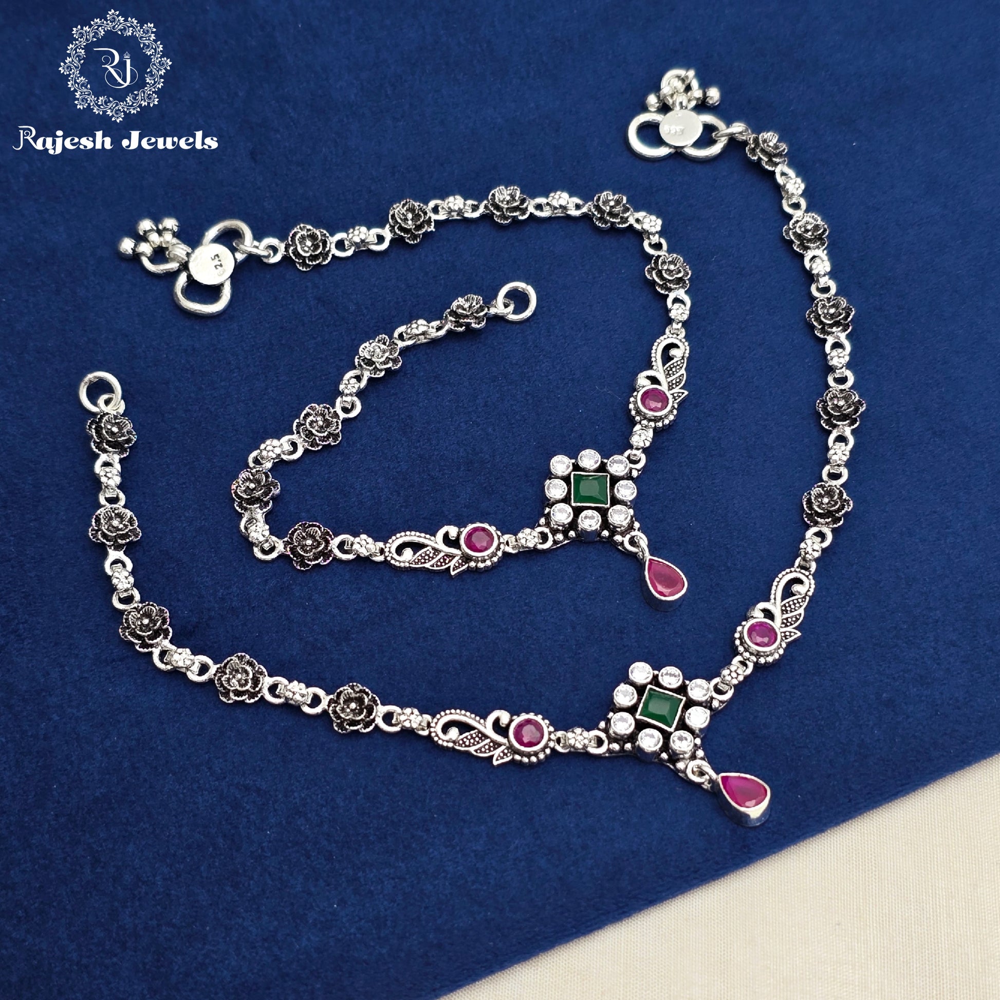 92.5 Pure Silver Oxidised Antique Finish Handmade Anklets Studded With Semi Precious Stones.