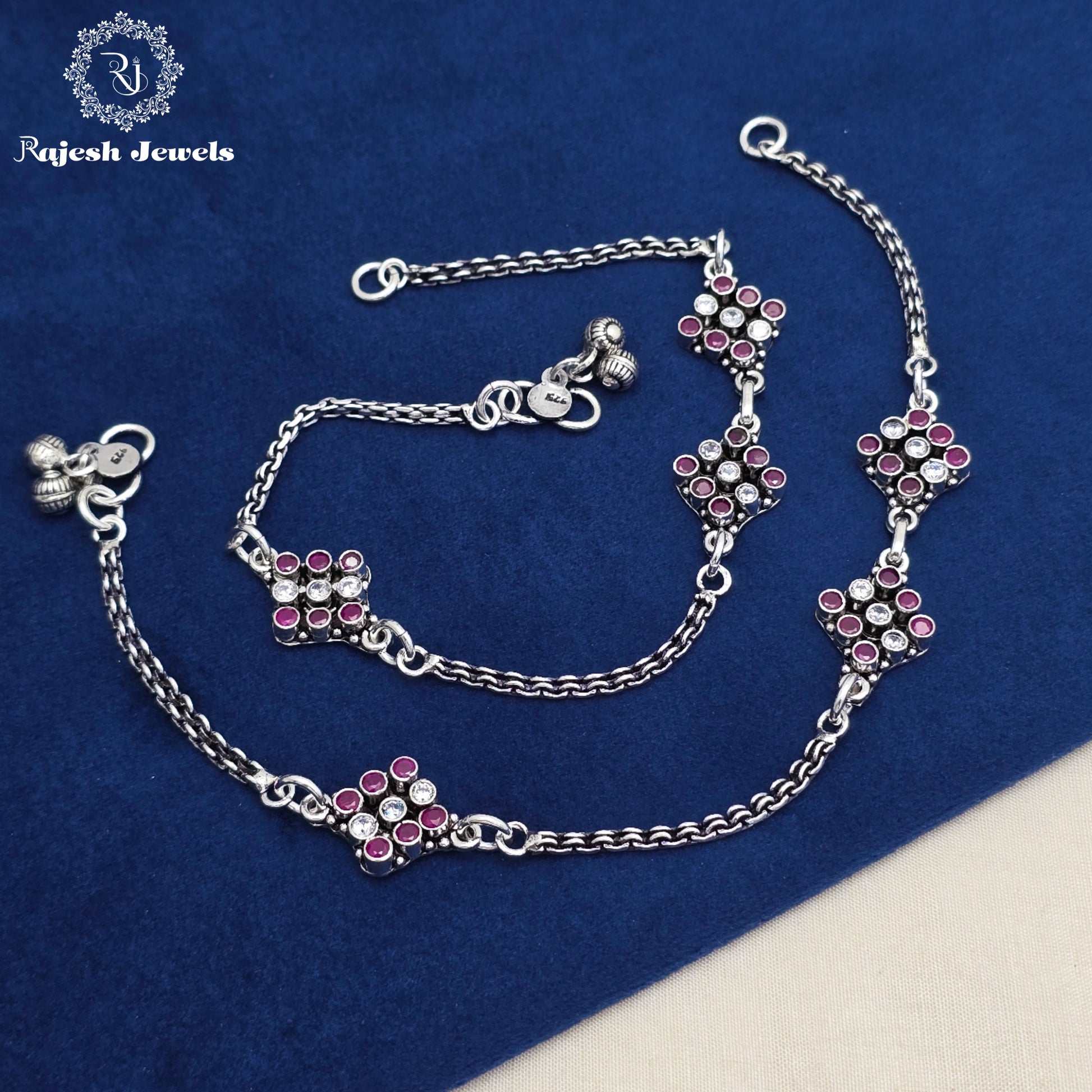 92.5 Pure Silver Oxidised Antique Finish Handmade Anklets Studded With Semi Precious Stones.