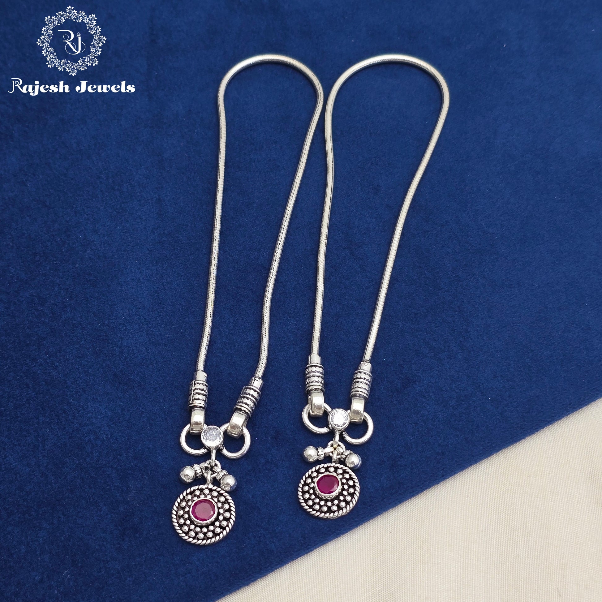 92.5 Pure Silver Oxidised Antique Finish Handmade Anklets Studded With Semi Precious Stones.
