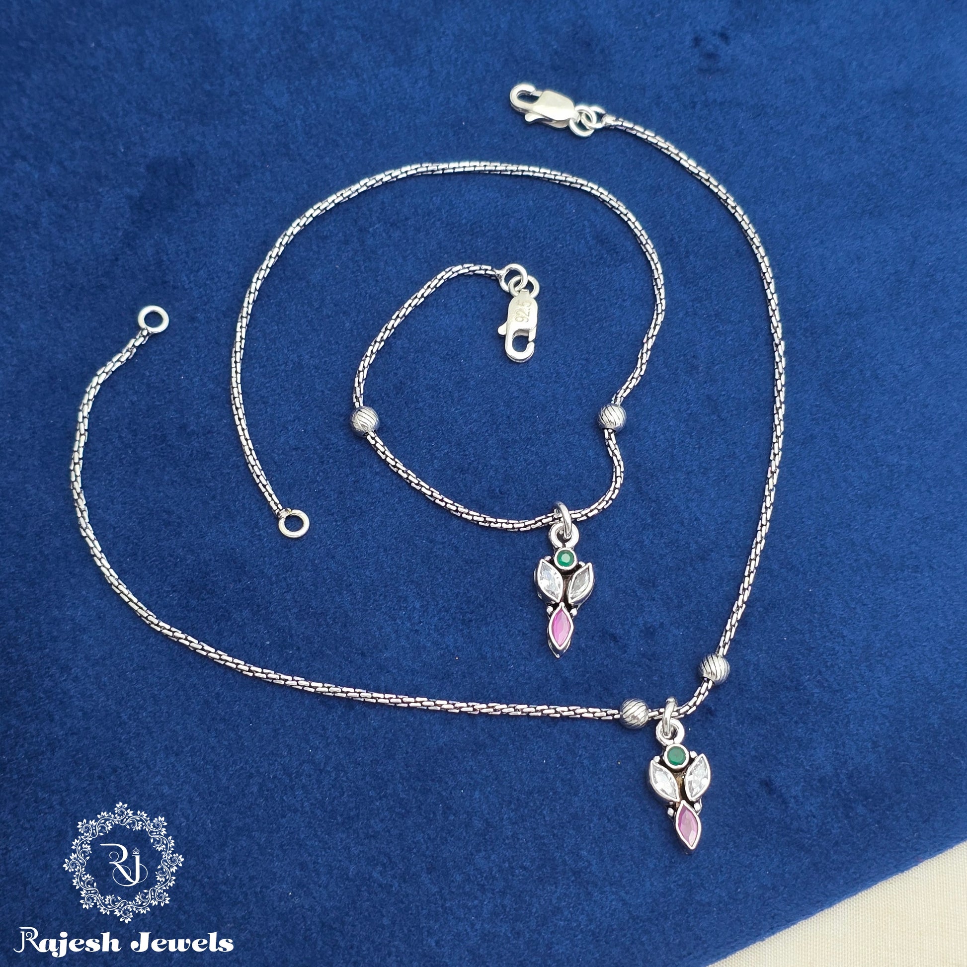 92.5 Pure Silver Oxidised Antique Finish Handmade Anklets Studded With Semi Precious Stones.