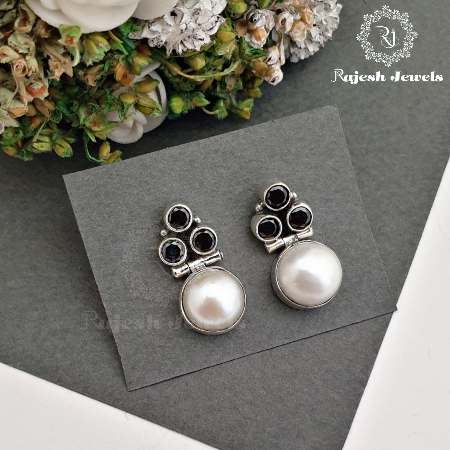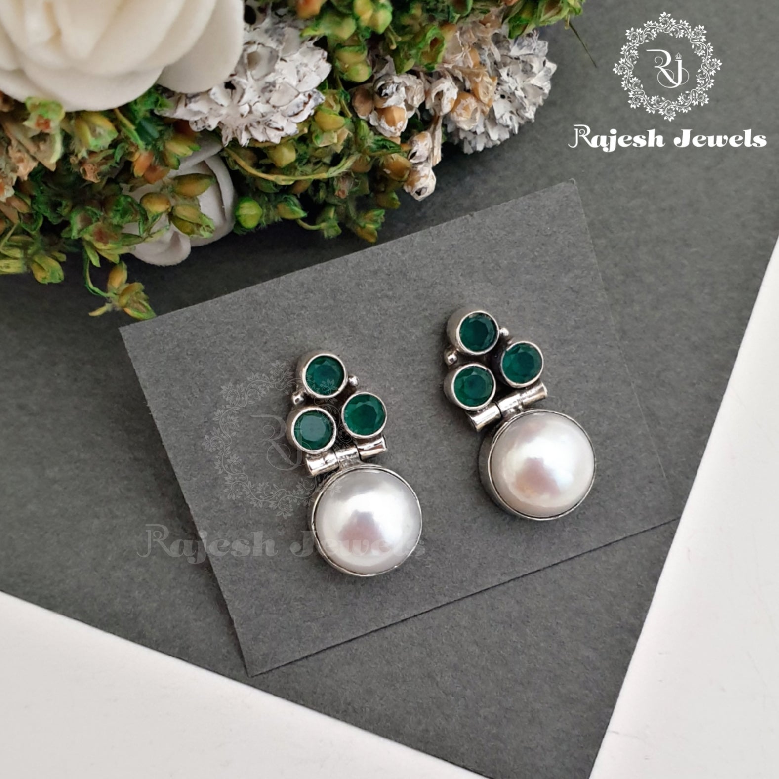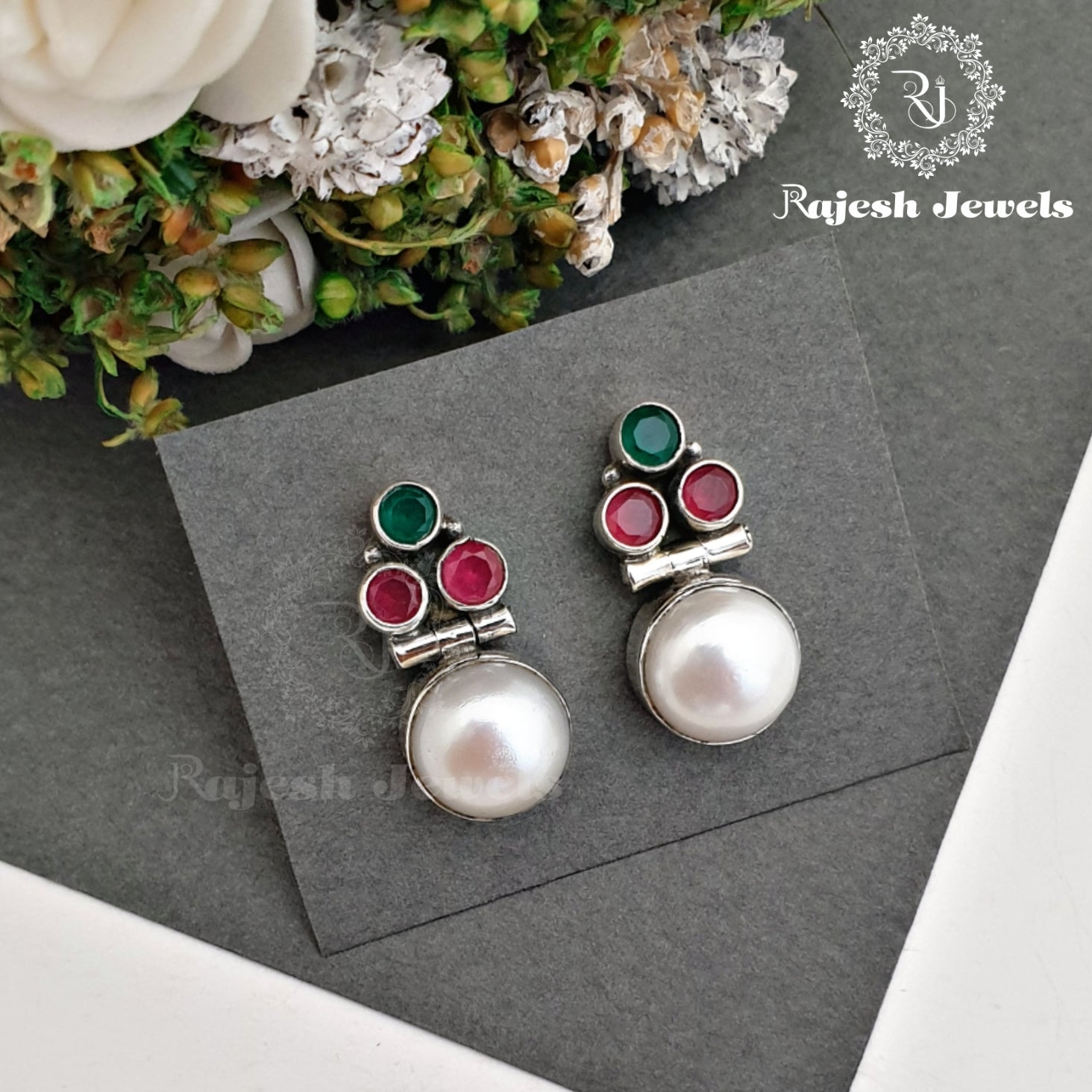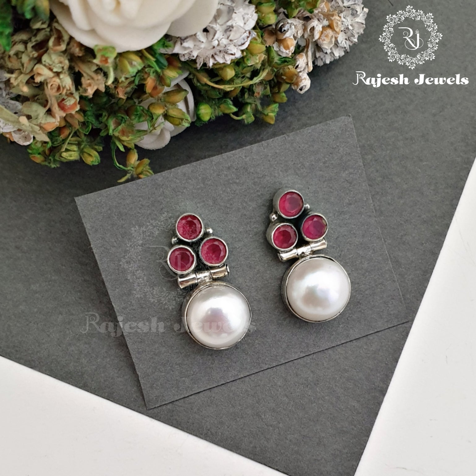 92.5 Pure Silver Oxidised Antique Finish Handmade Earrings Studded With Semi Precious Stones
