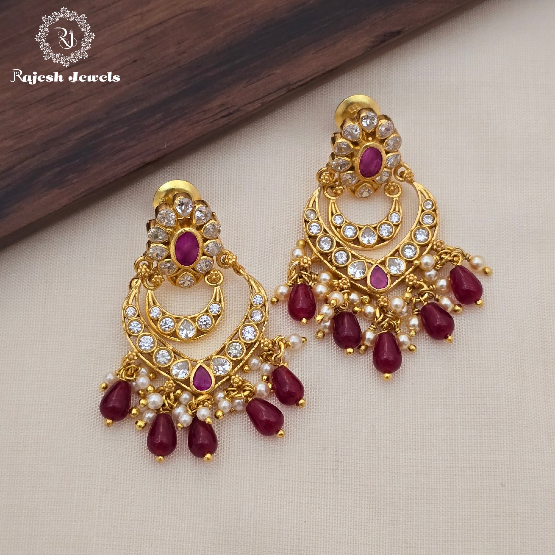 92.5 Pure Silver 22K Gold Plated Earrings Studded With Semi Precious Stones