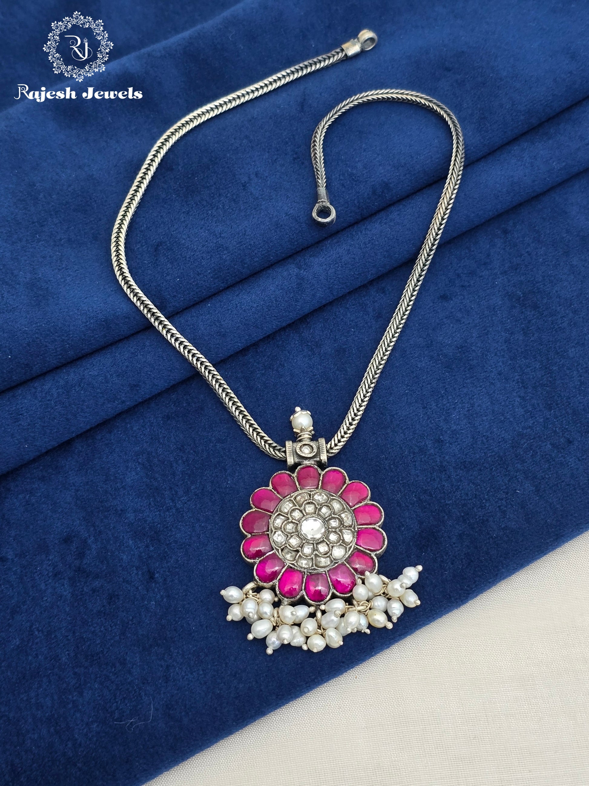 92.5 Pure Silver Oxidised Antique Finish Necklace Studded With Semi Precious Stones