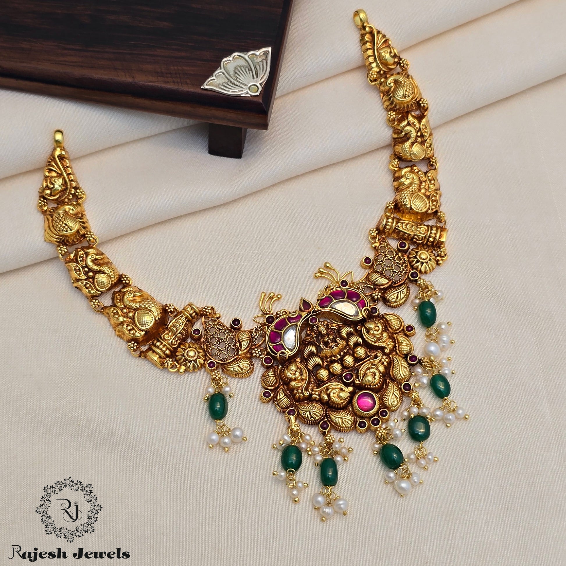 92.5 Pure Silver 22K Gold Plated Necklace Studded With Semi Precious Stone
