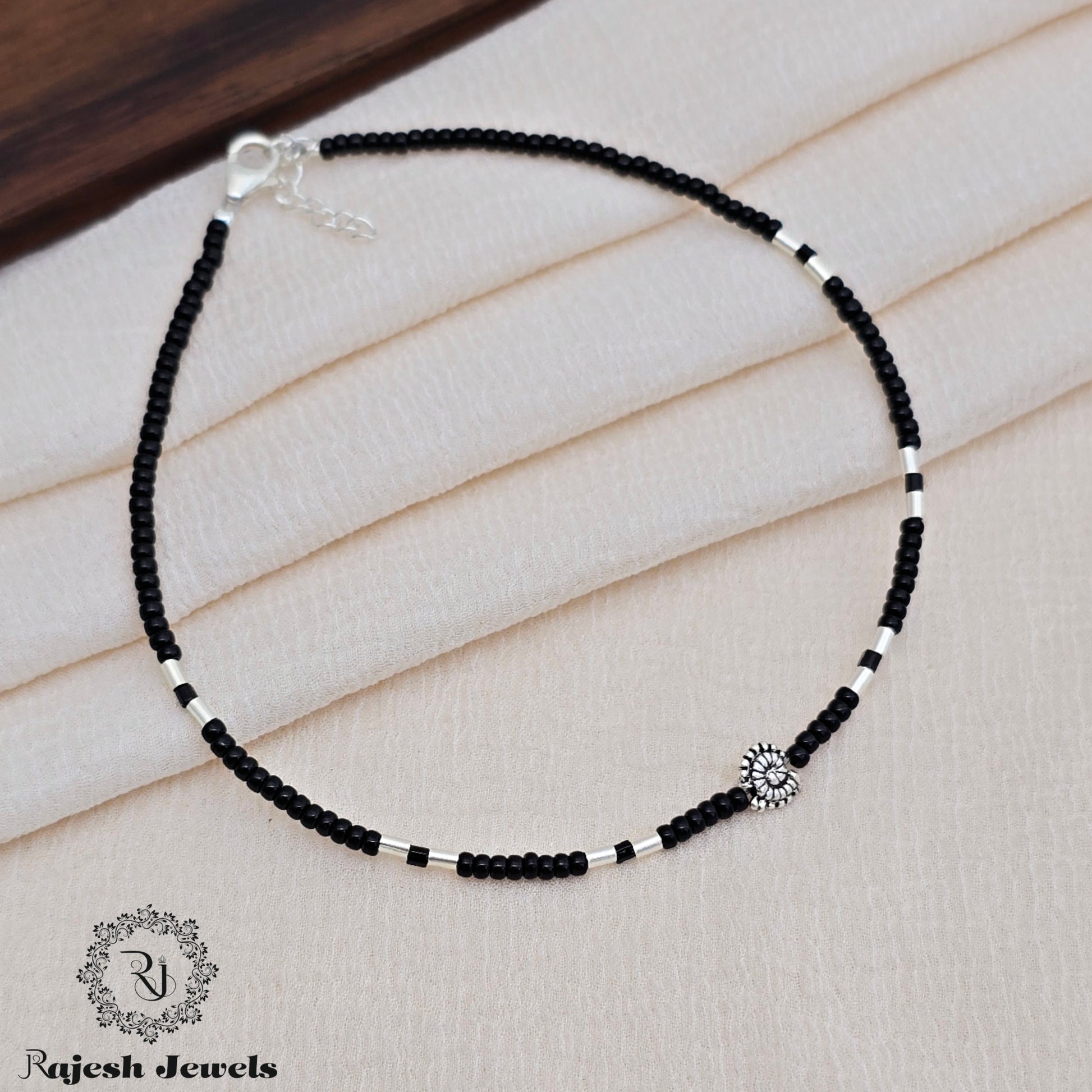 92.5 Pure Sterling Silver Blackbead Nazariya Single Anklet