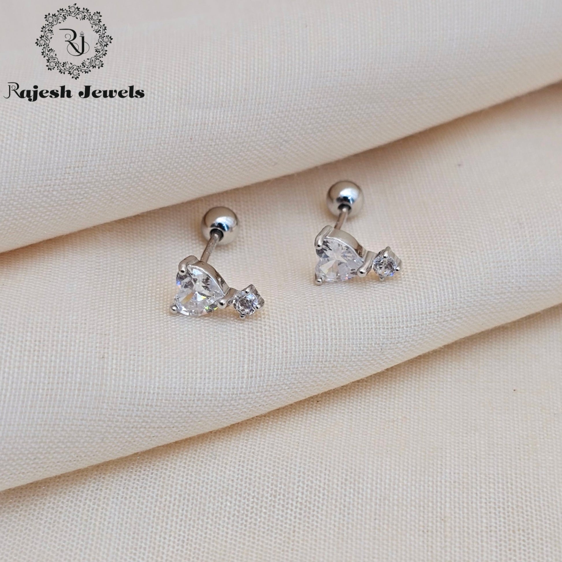 92.5 Pure Sterling Silver 2nd Stud Cum Kid's Earrings Studded With Semi Precious Stones