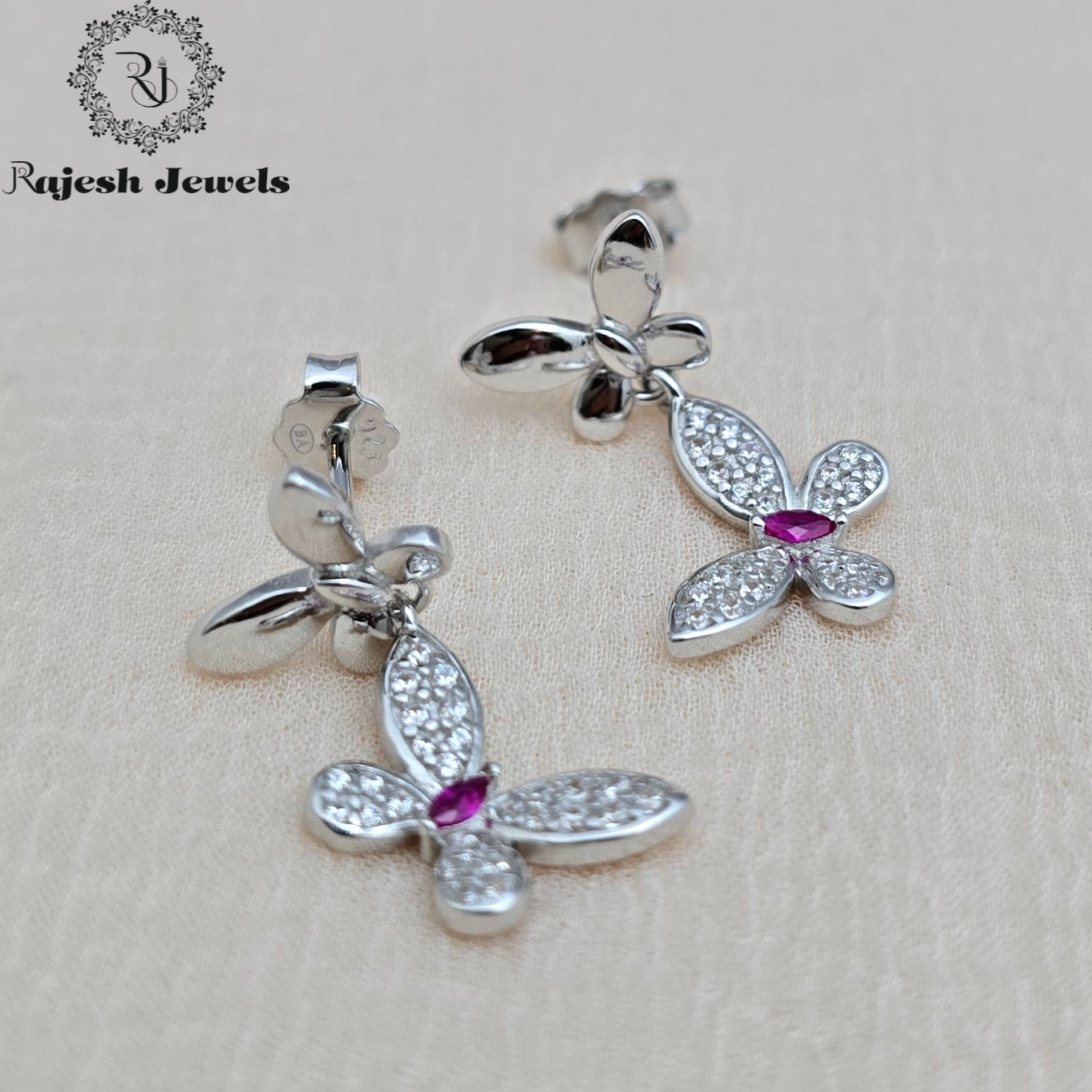 92.5 Pure Sterling Silver Cz Hanging Earrings Studded With Semi Precious Stones