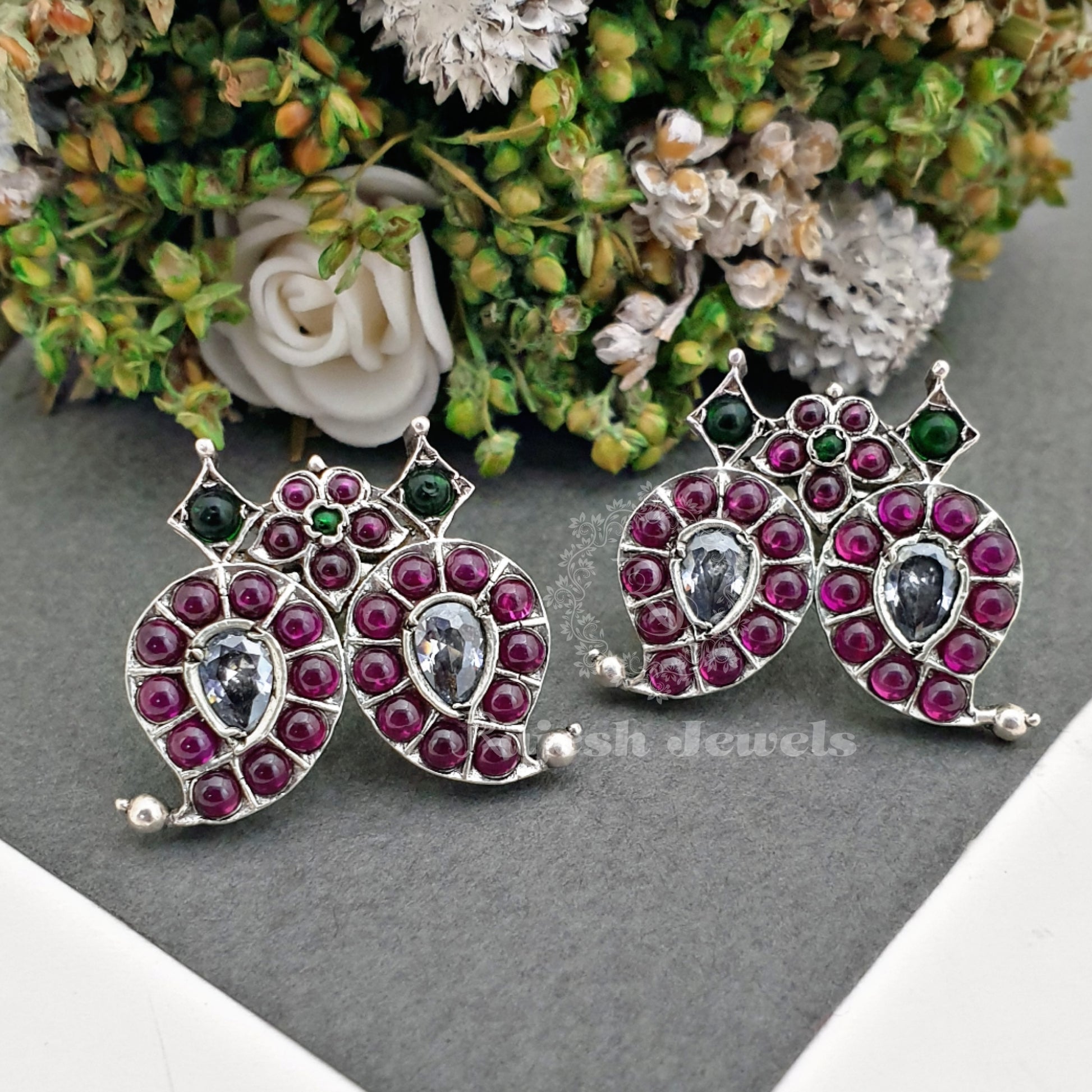 92.5 Pure Silver Oxidised Antique Finish Handmade Earrings Studded With Semi Precious Stones