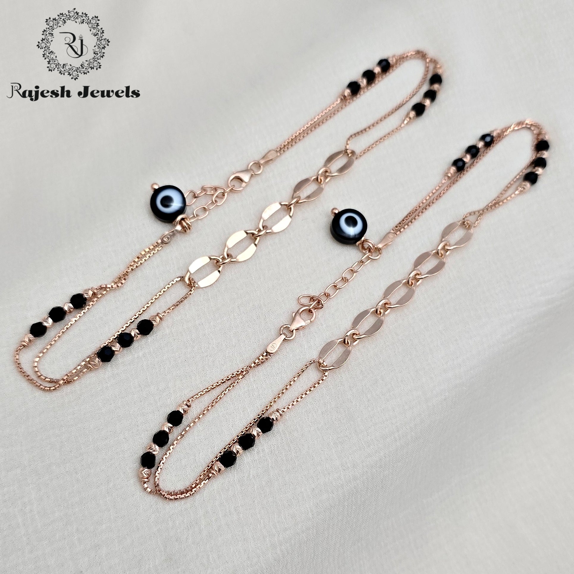 Alluring Dual Chain Rosegold Blackbead Sleek Anklet