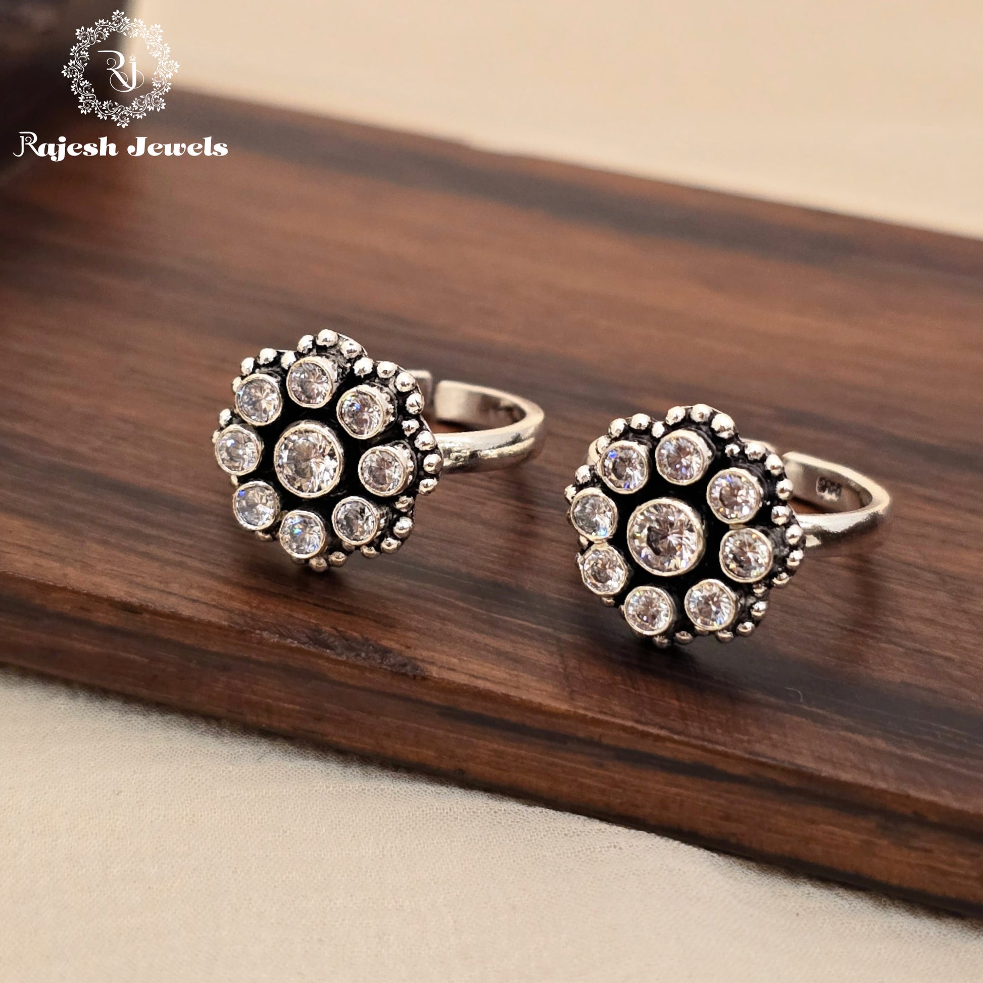 92.5 Pure Silver Plain White Finish Handmade Toerings Studded With Semi Precious Stones