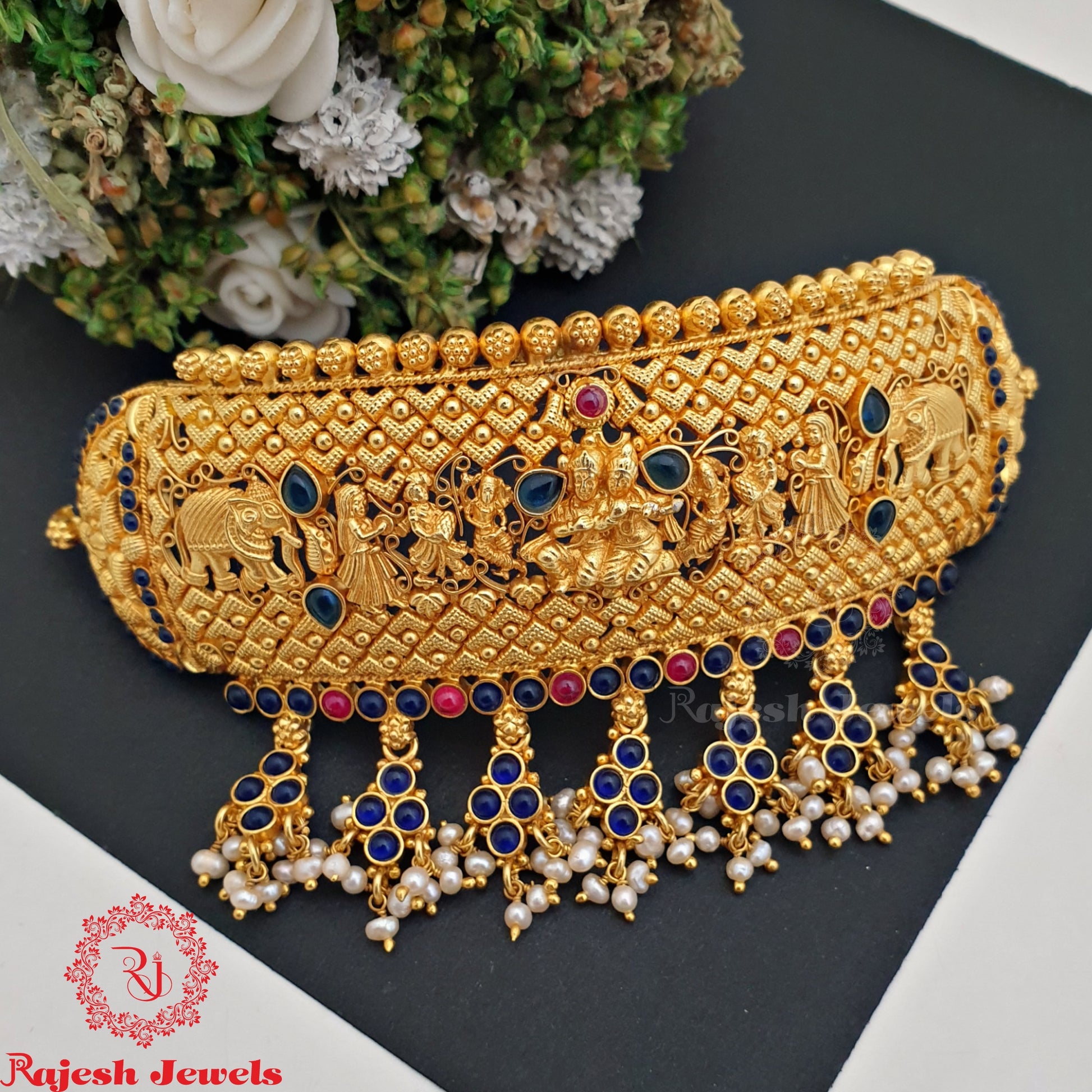 Pure Silver Choker Neckpiece With 22K Gold Plating Studded Semi Precious Stones.