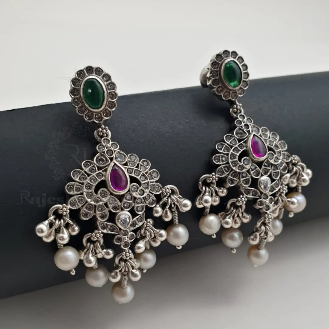 92.5 Pure Sterling Silver Chandbali Earrings Studded With Semi Precious Stones