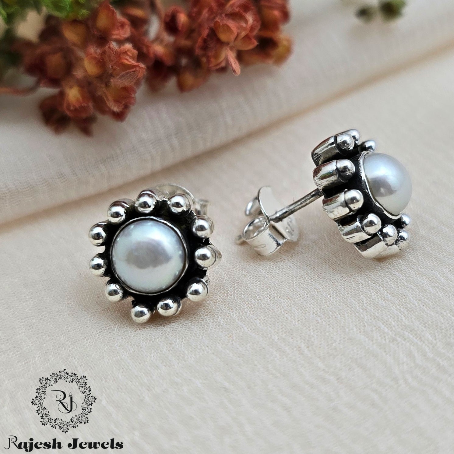 92.5 Pure Silver Oxidised Antique Finish Handmade Stud Earrings Studded With Semi Precious Stones