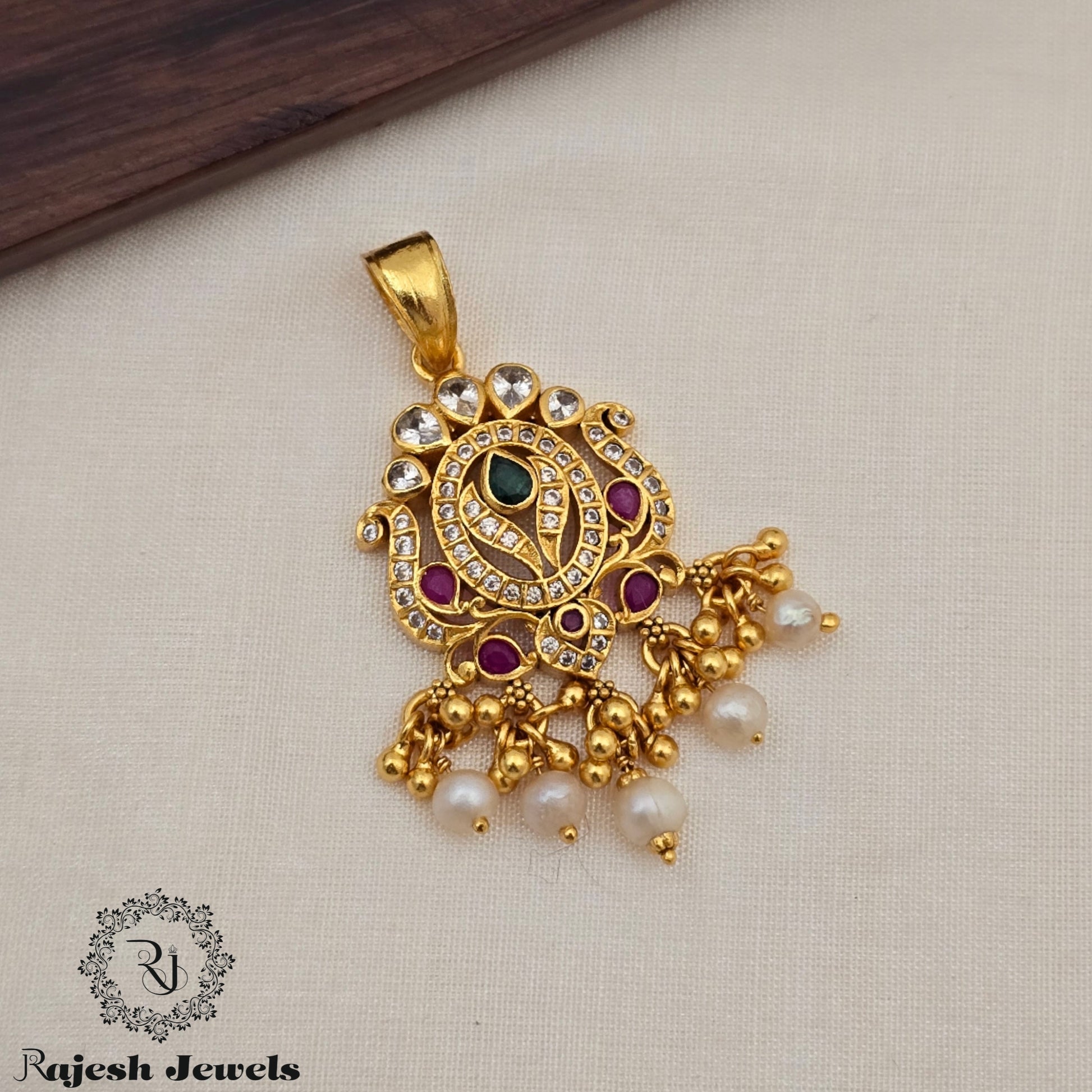 92.5 Pure Silver 22K Gold Plated Pendant Studded With Semi Precious Stones