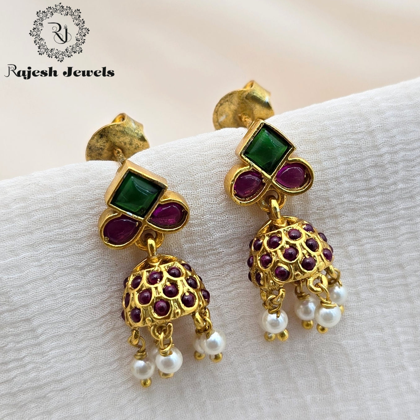 92.5 Pure Silver 22K Gold Polish Jumka Earrings Studded With Semi Precious Stones