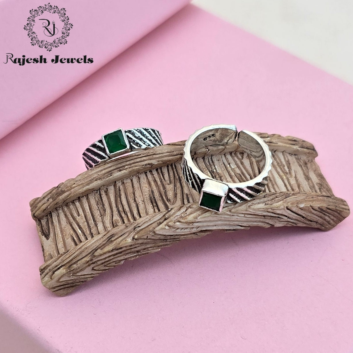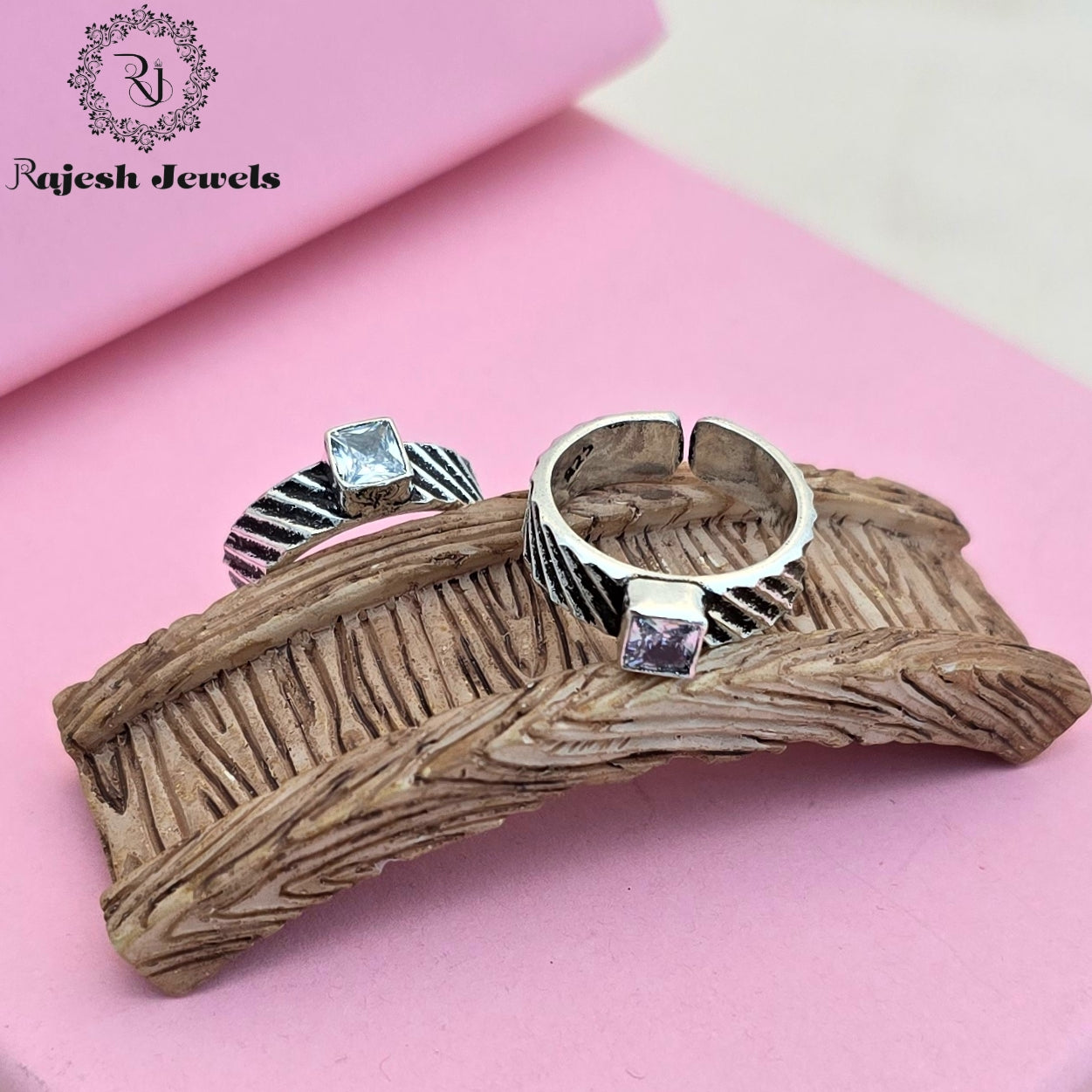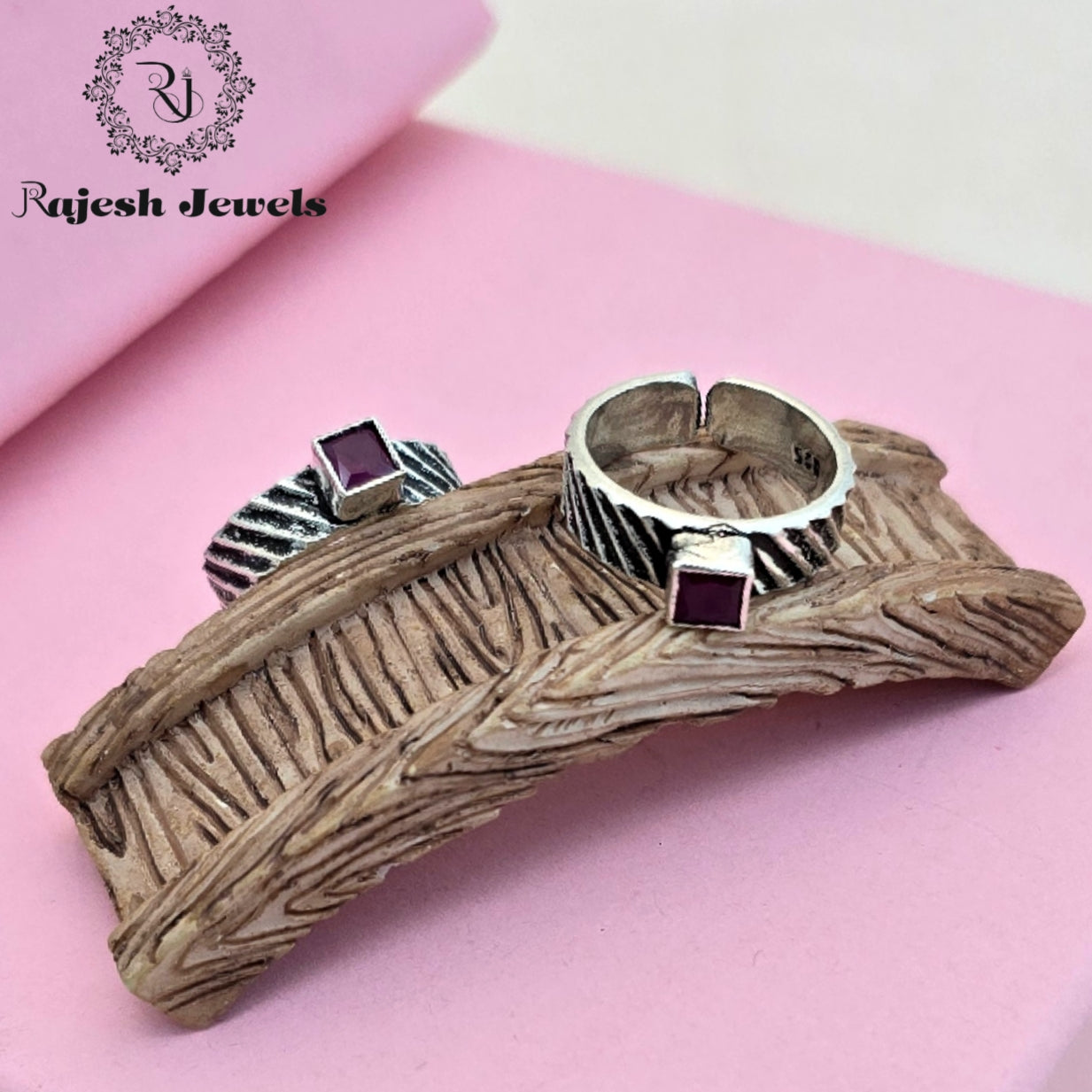 92.5 Pure Silver Oxidised Antique Finish Handmade Toerings Studded With Semi Precious Stones