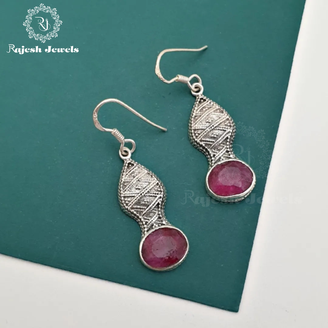 92.5 Pure Silver Oxidised Antique Finish Handmade Earrings Studded With Semi Precious Stones