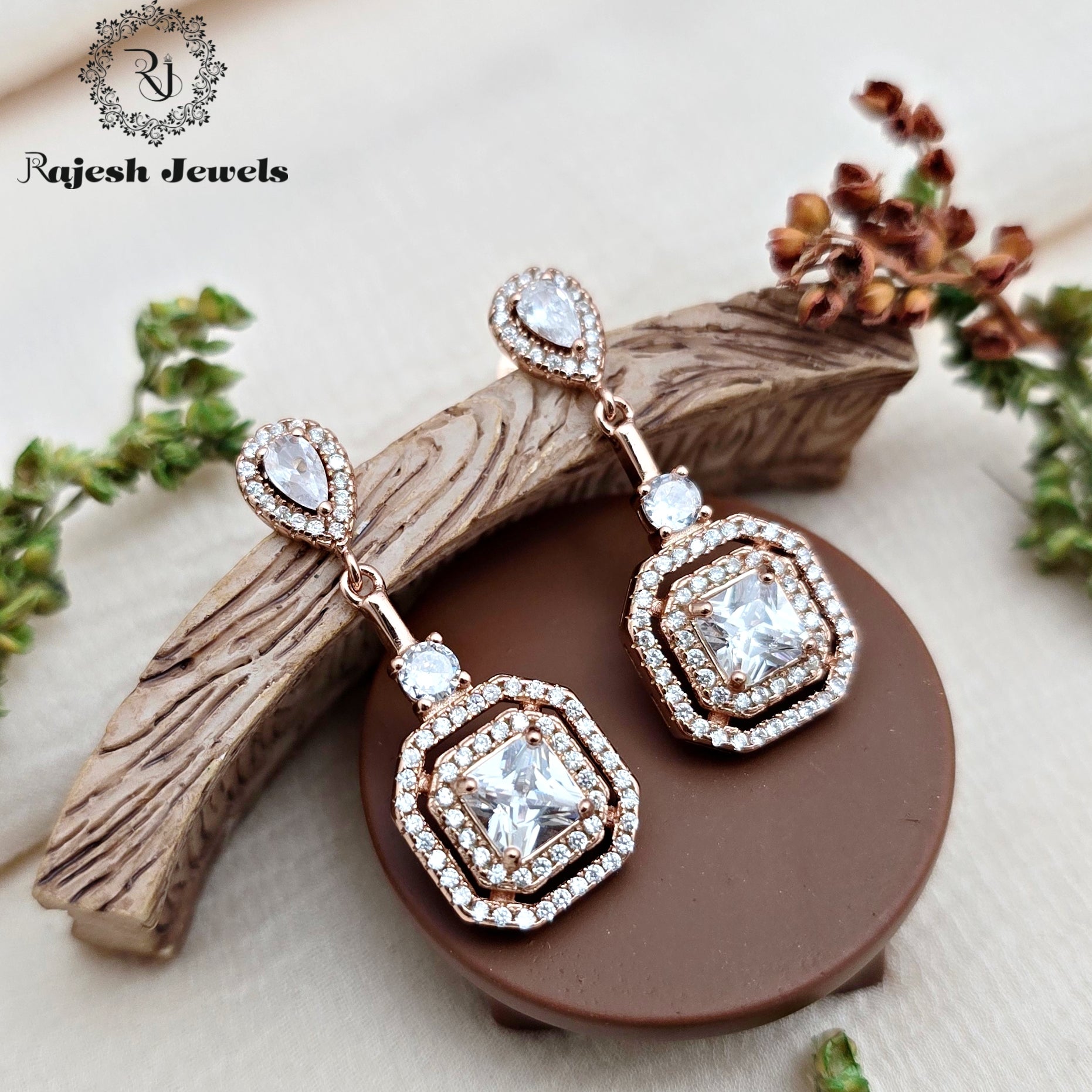 Attractive Halo Drop Rosegold Silver Earrings