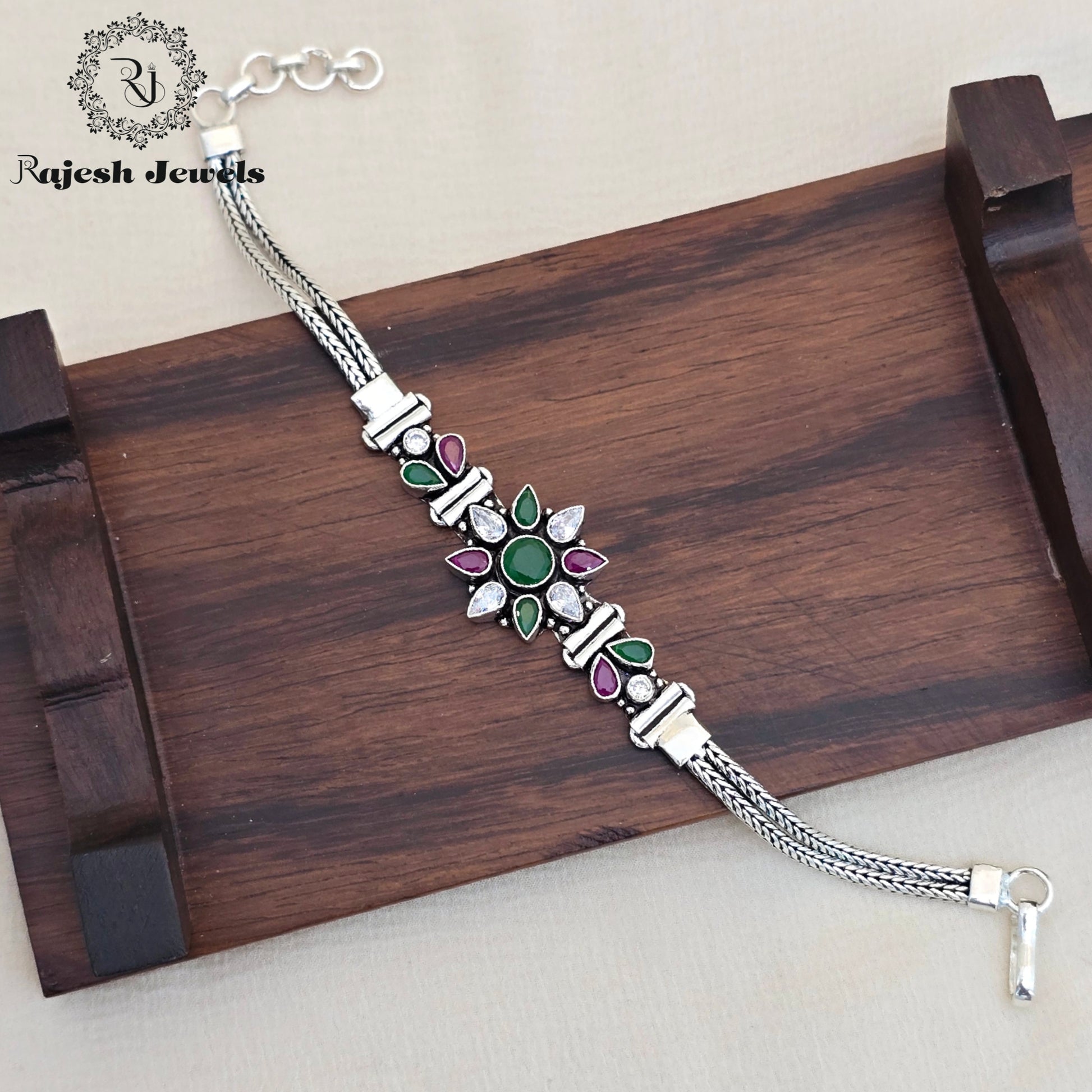 92.5 Pure Silver Oxidised Antique Finish Handmade Ladies Bracelet Studded With Semi Precious Stones