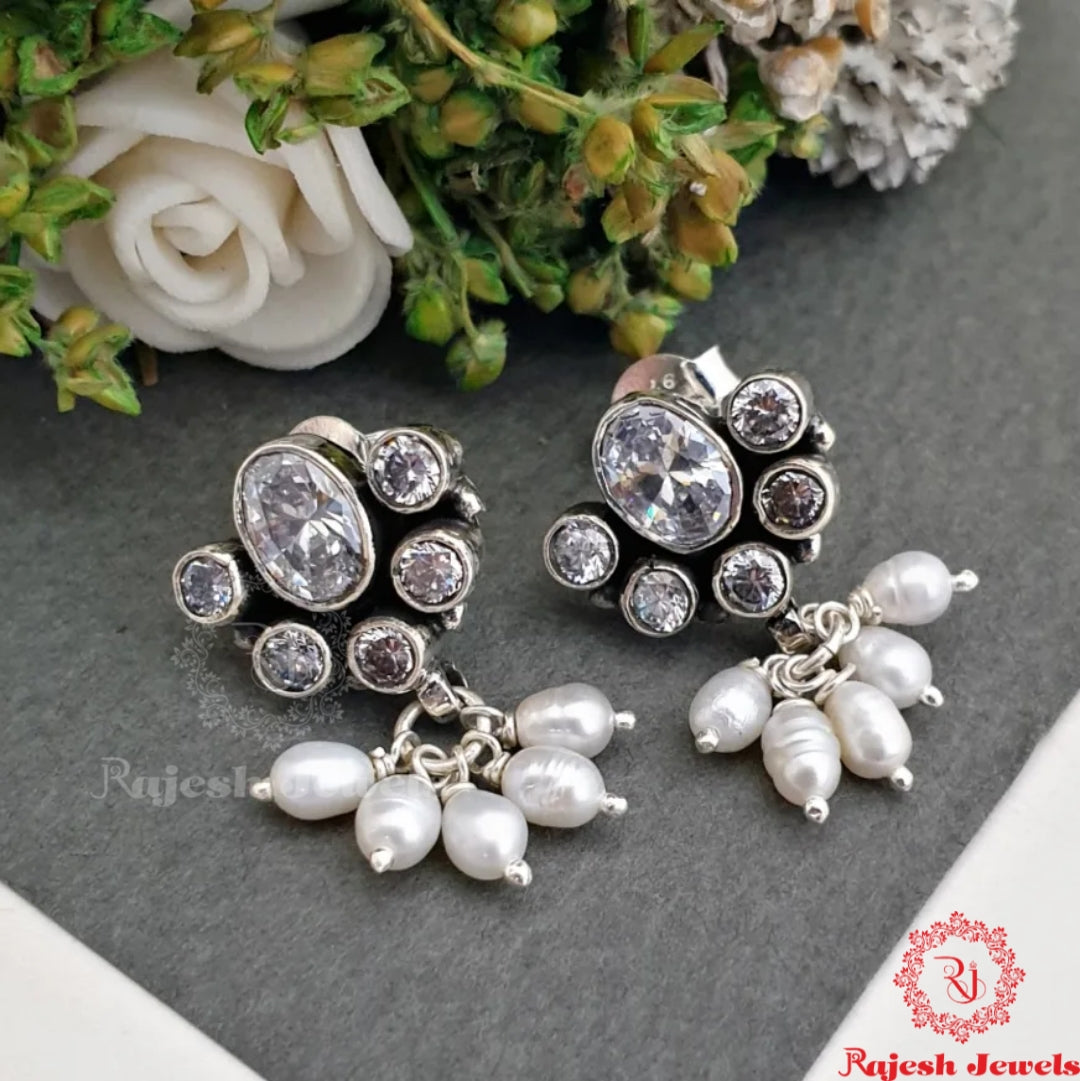 92.5 Pure Silver Oxidised Antique Finish Earrings Studded With Cutstones.