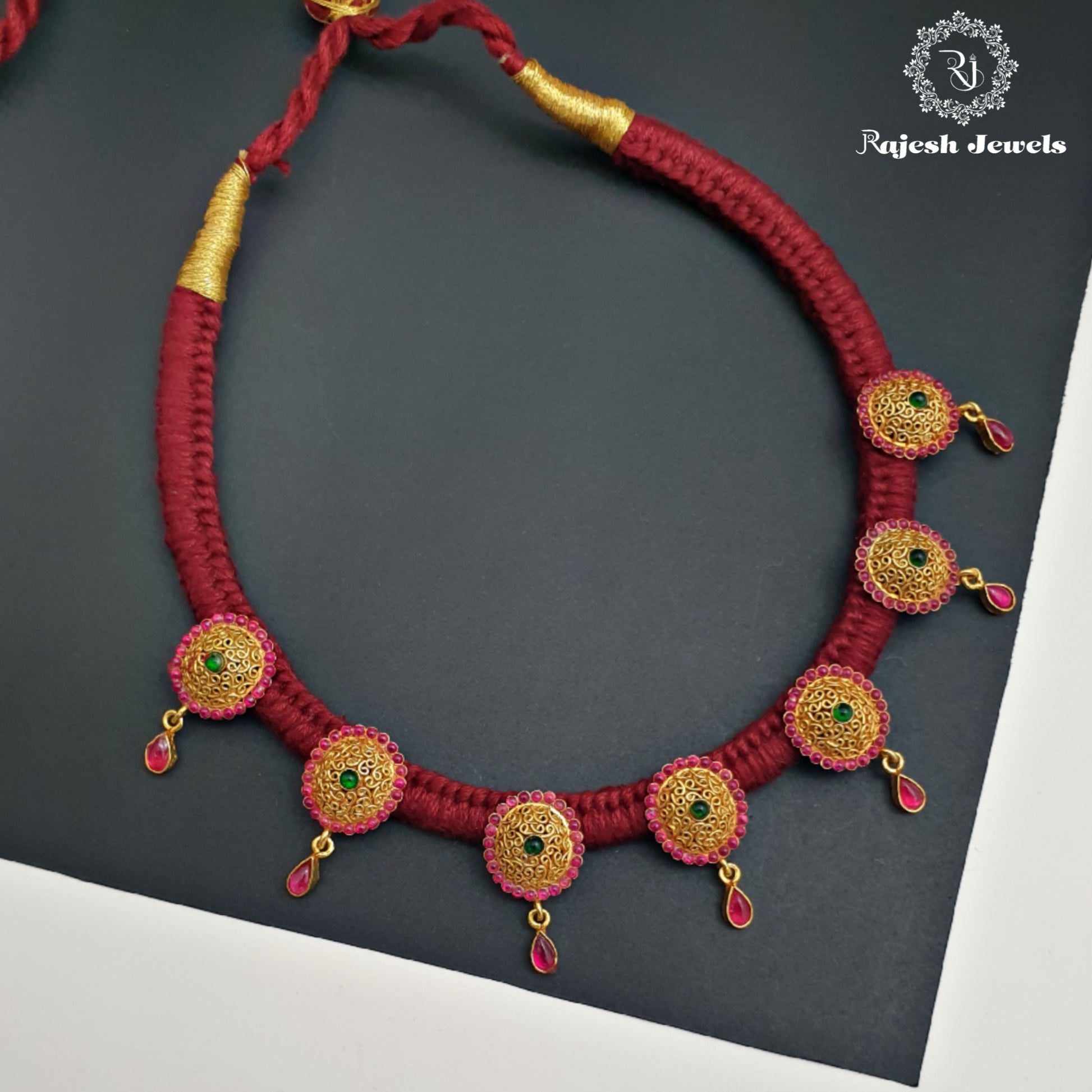 Maroon Red Theard Necklace With Adjustable Tassel Attached