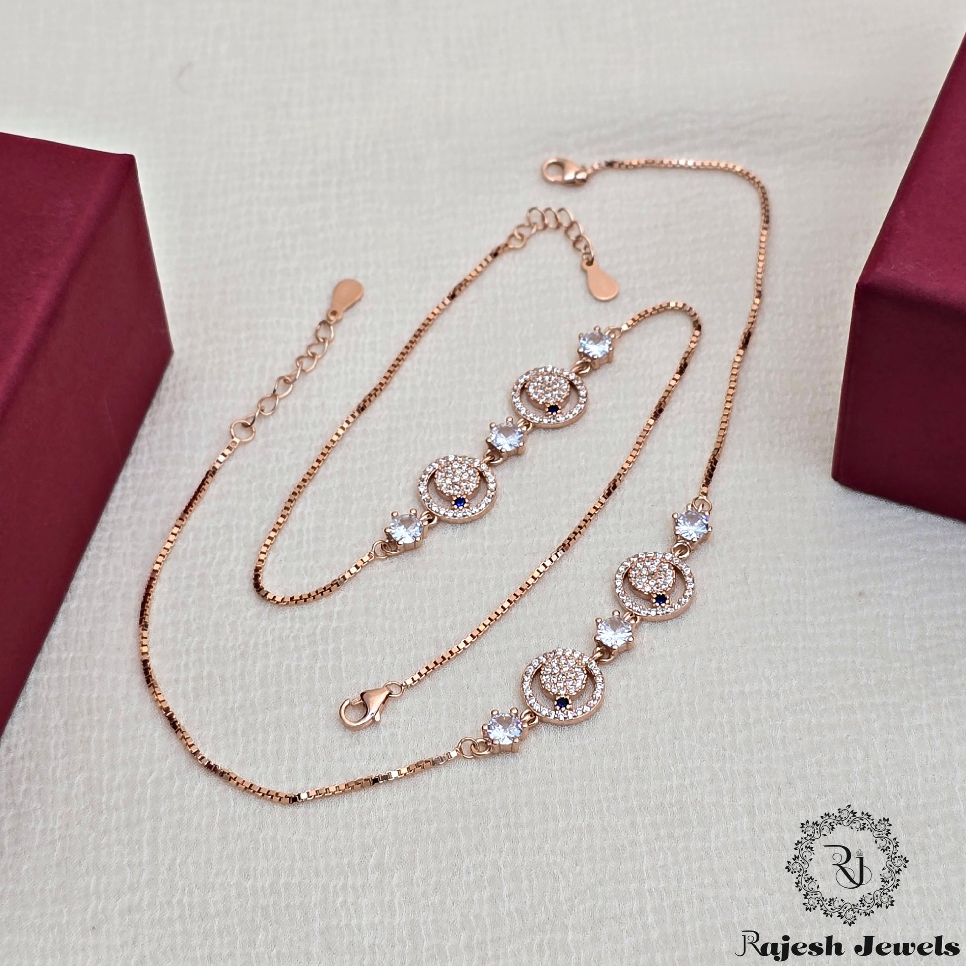 92.5 Pure Sterling Silver Cz Anklet Studded With Semi Precious Stones