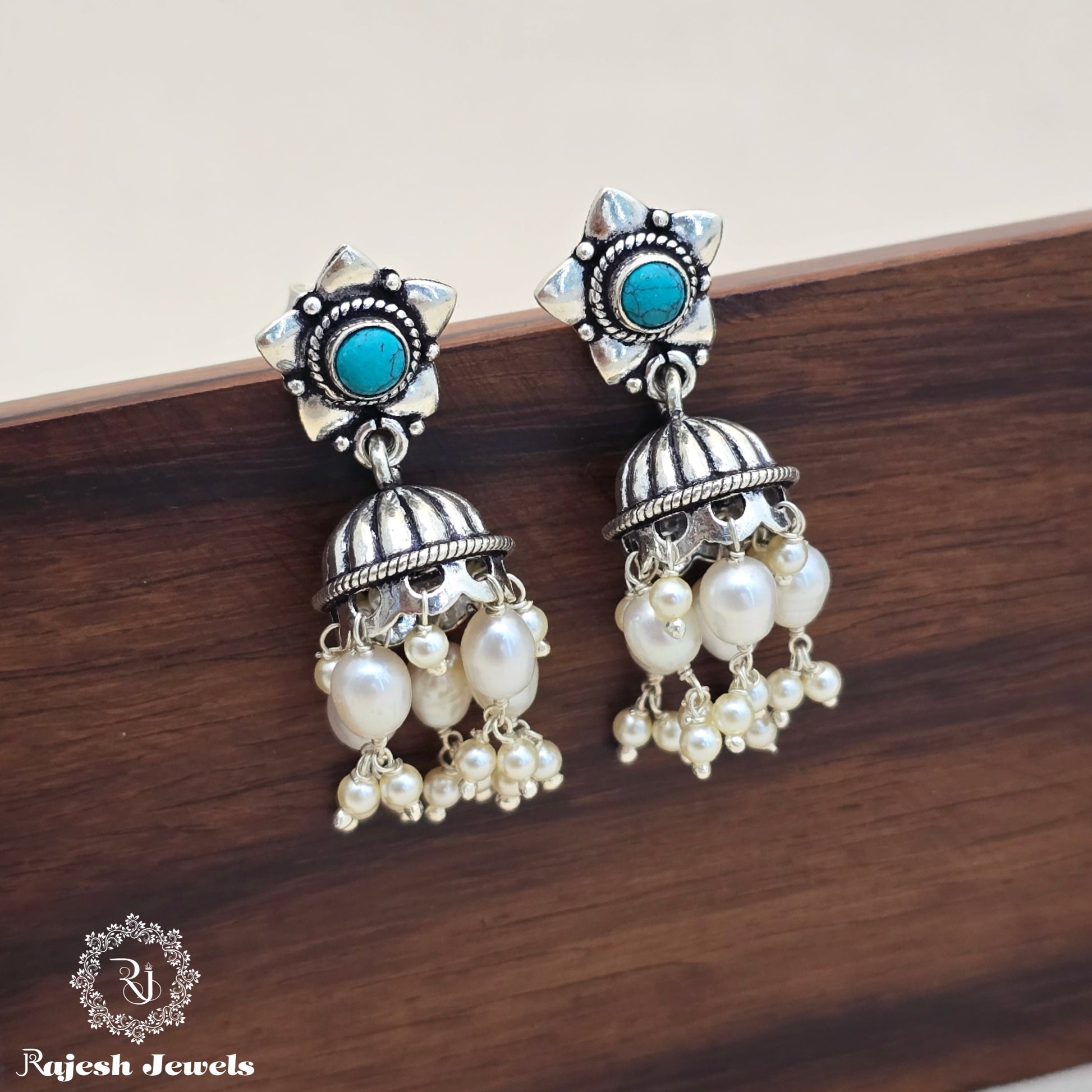 Beautiful Turquoise Pearl Jumka Earrings