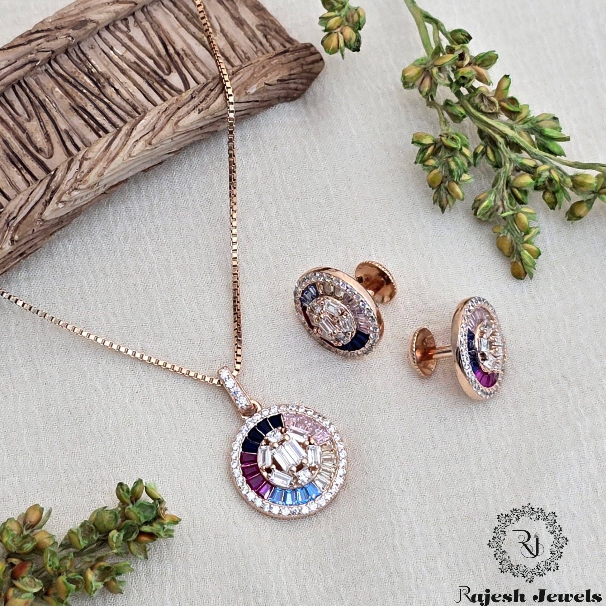 Beautiful Multicolored Silver Rosegold Pendant Set
