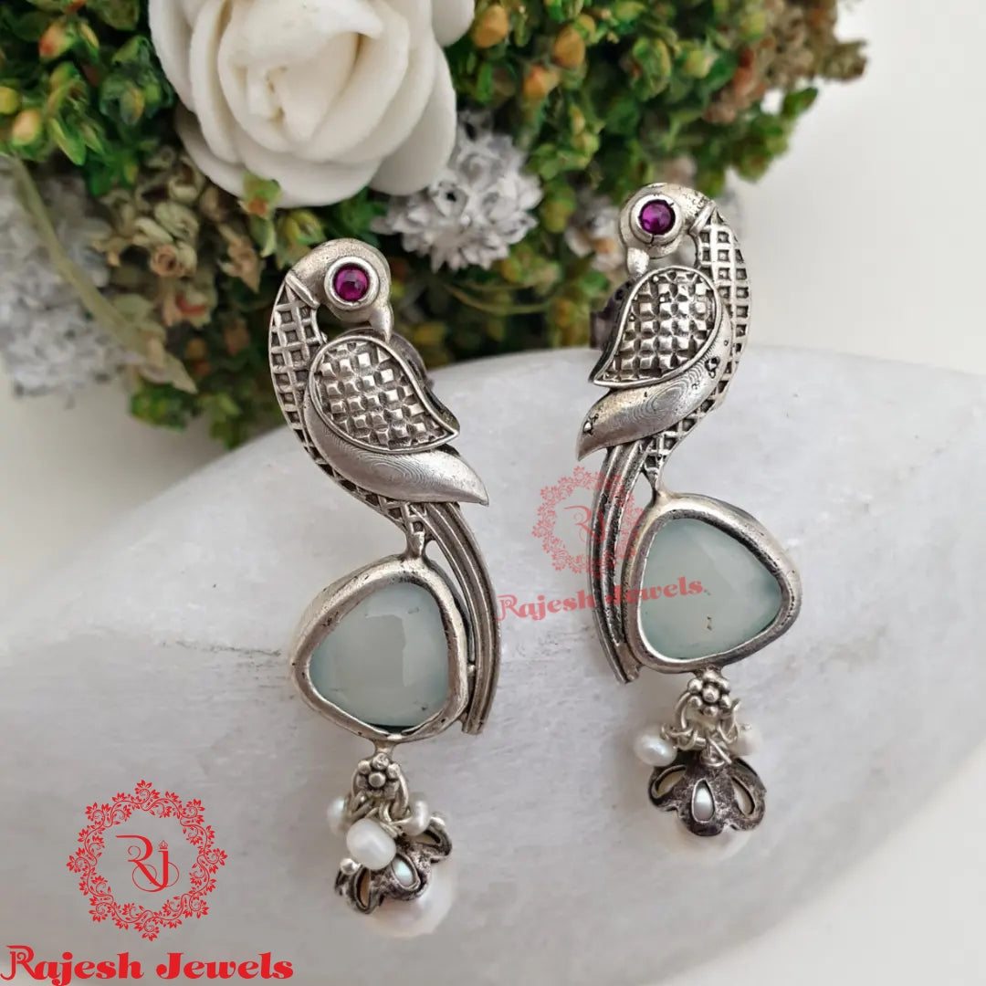 92.5 Pure Silver Oxidised Antique Finish Earrings Studded With Semi Precious Stones