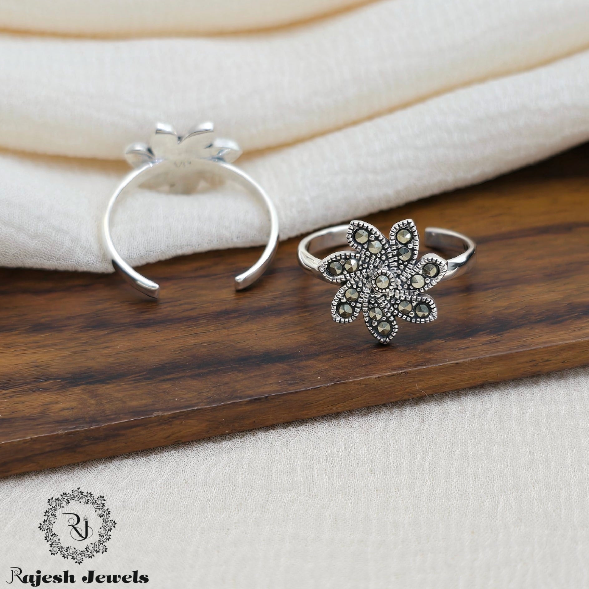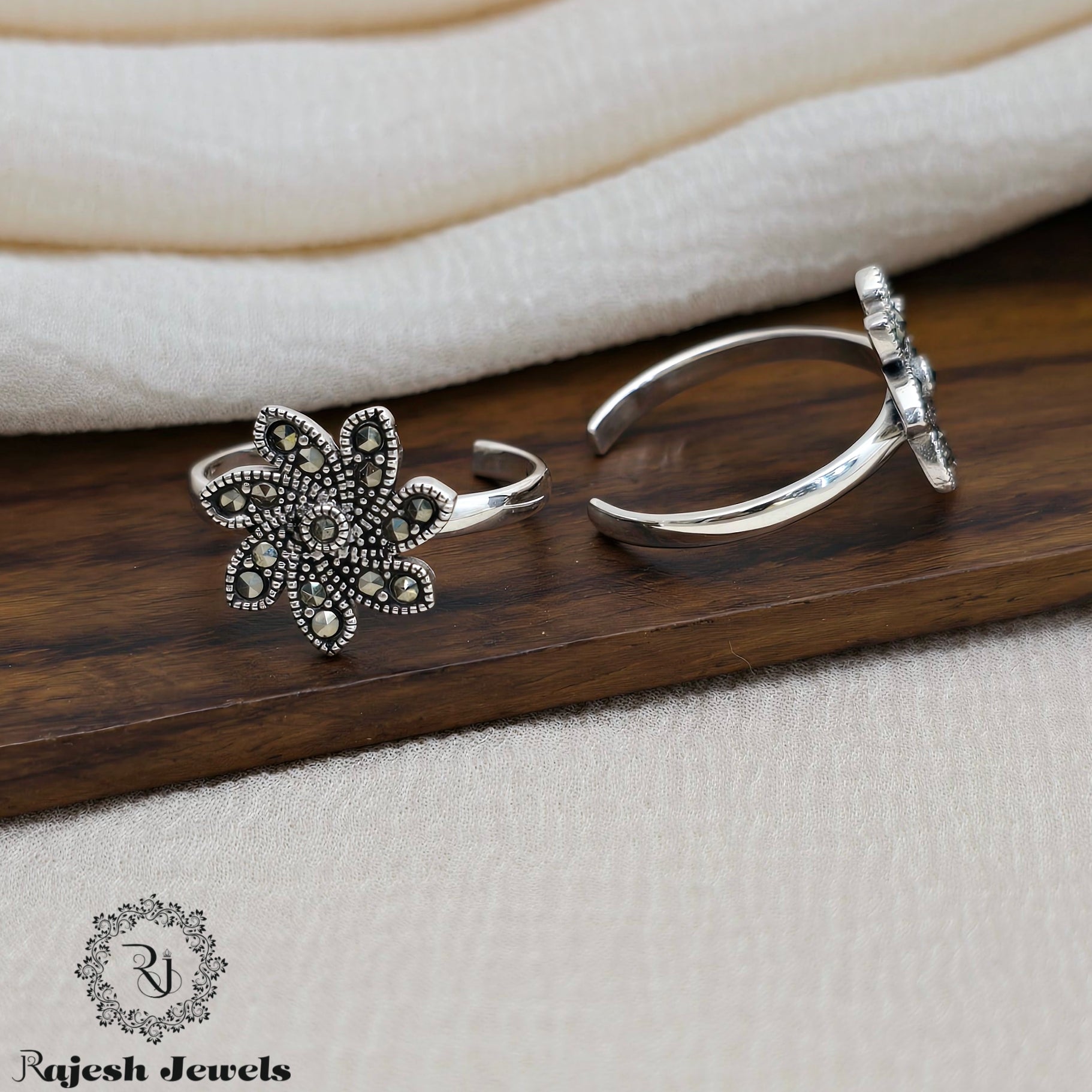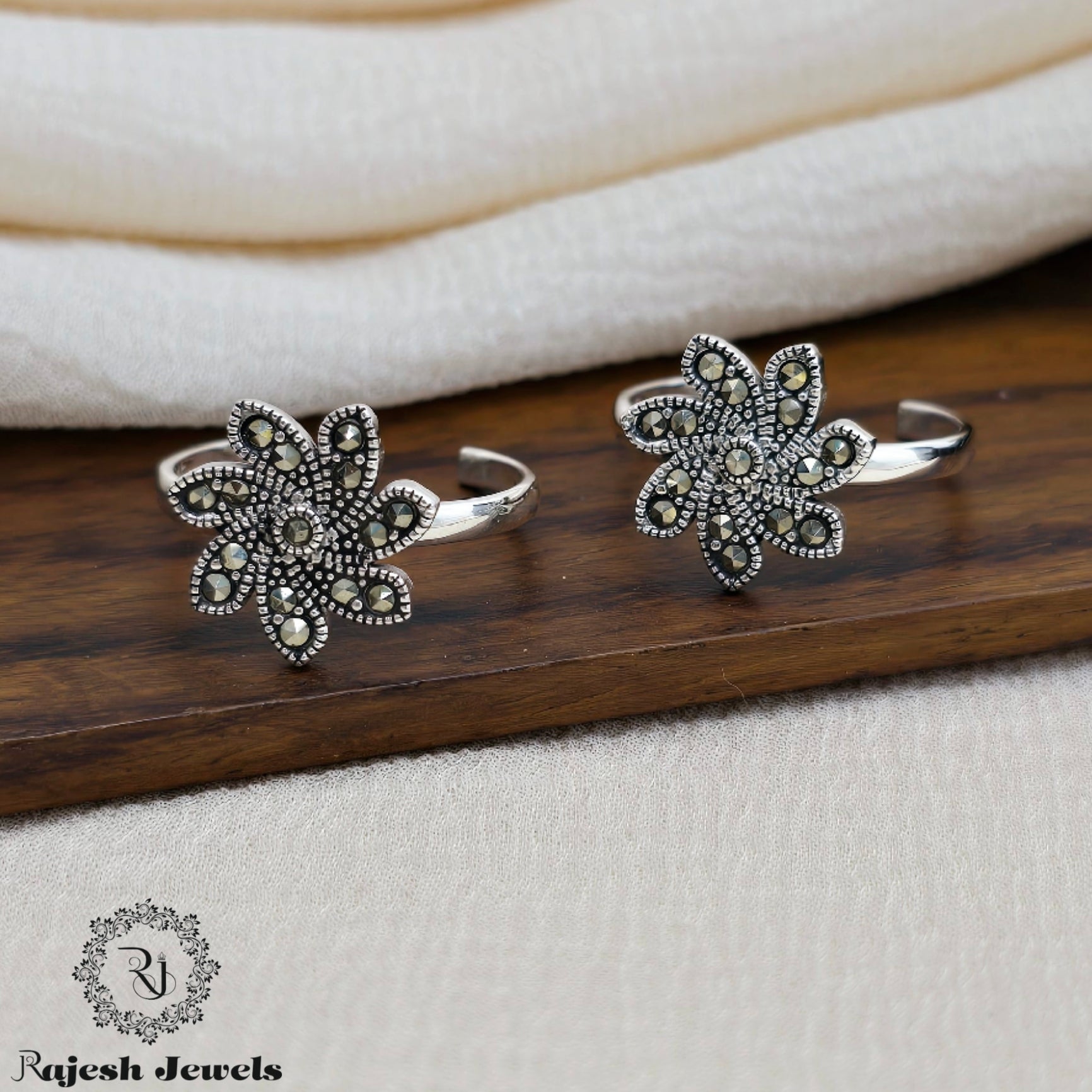 Charismatic Floral Silver Oxidised Toerings