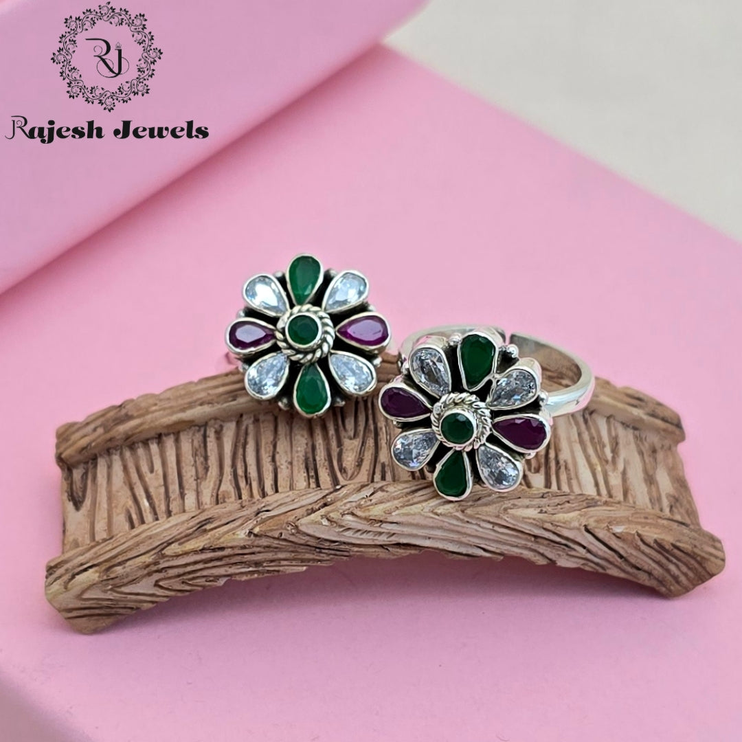 92.5 Pure Silver Oxidised Antique Finish Handmade Toerings Studded With Semi Precious Stones