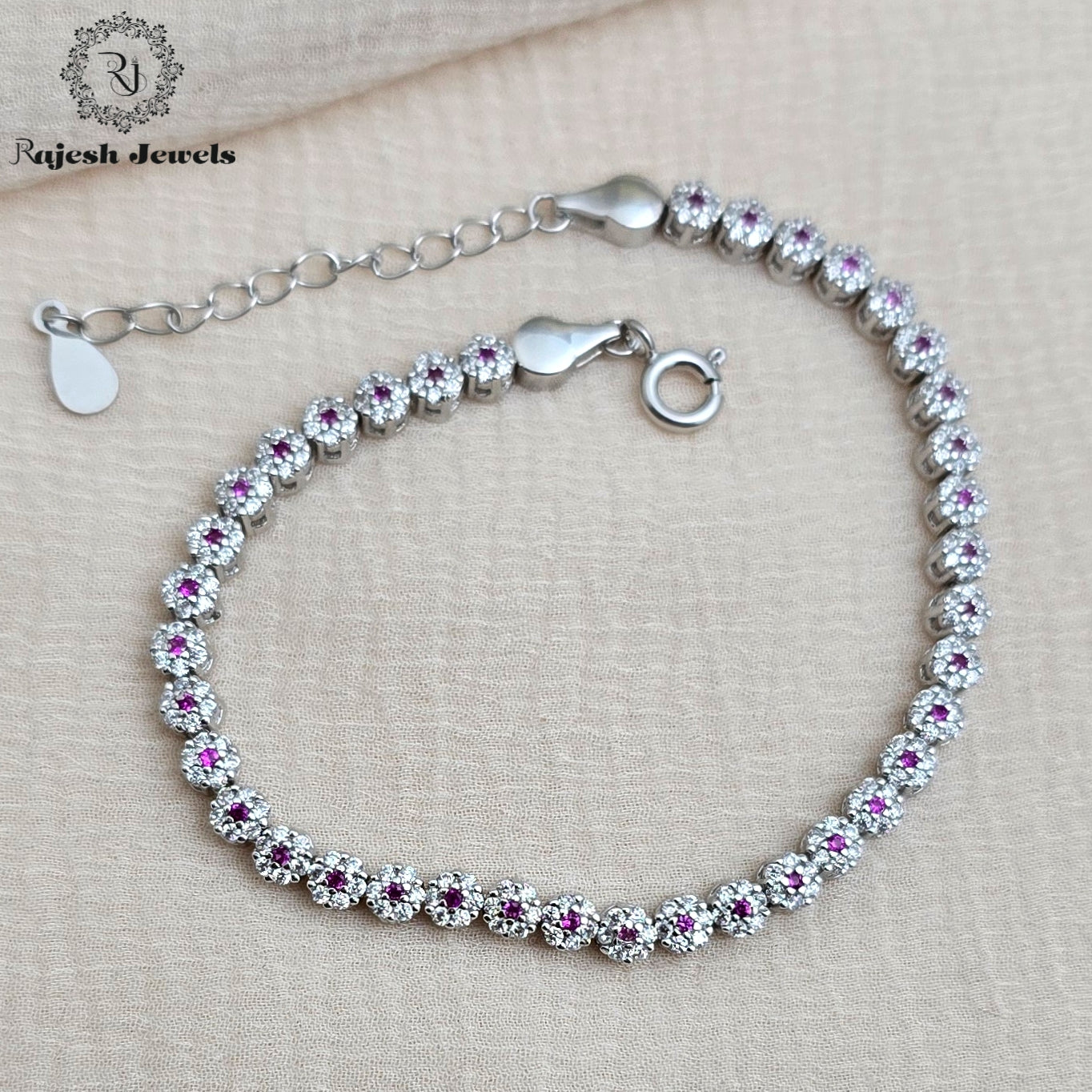92.5 Pure Sterling Silver Cz Rosegold Bracelet Studded With Semi Precious Stones