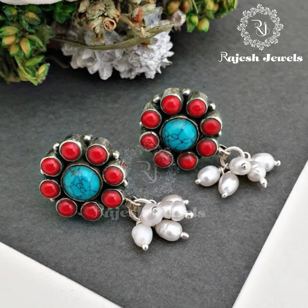 Coral Turquoise Floral Earrings
