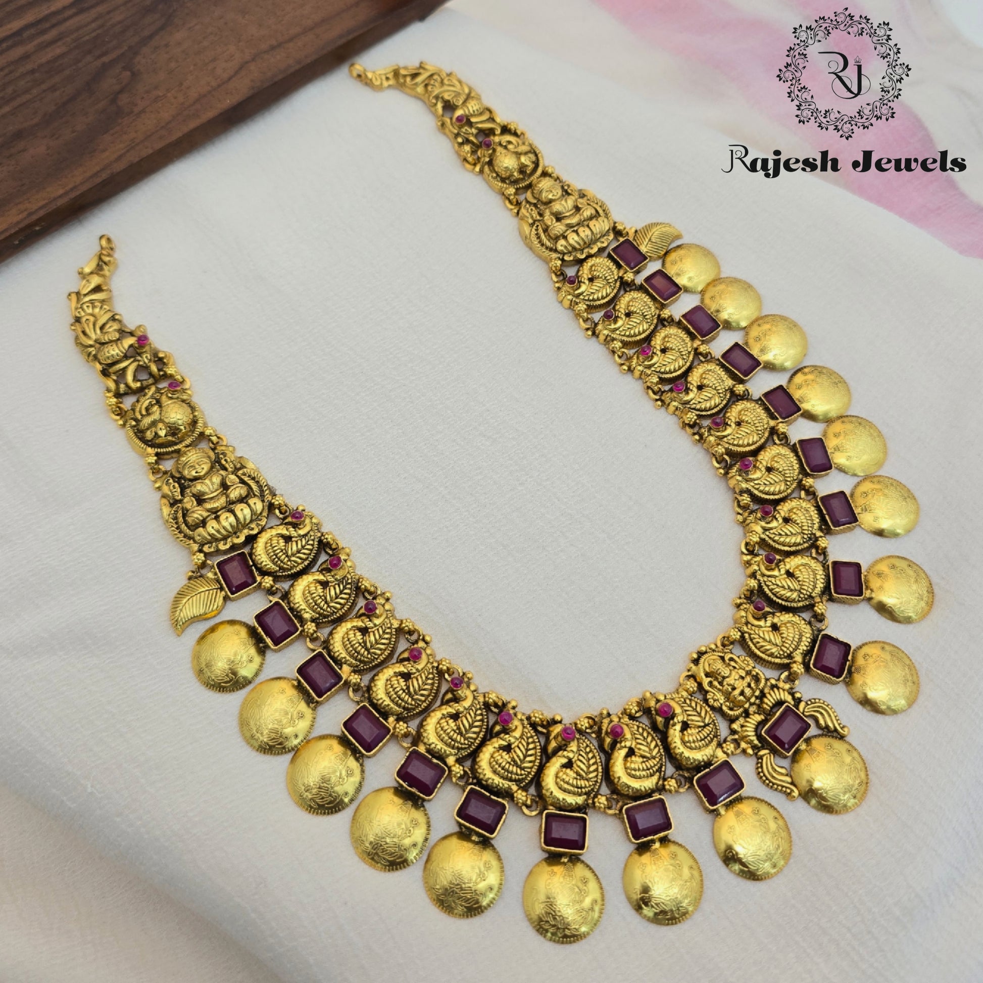 92.5 Pure Silver 22K Gold Plated Necklace Studded With Semi Precious Stone