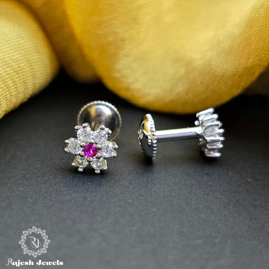 92.5 Pure Sterling Silver South Screw Earrings Studded With Semi Precious Stones