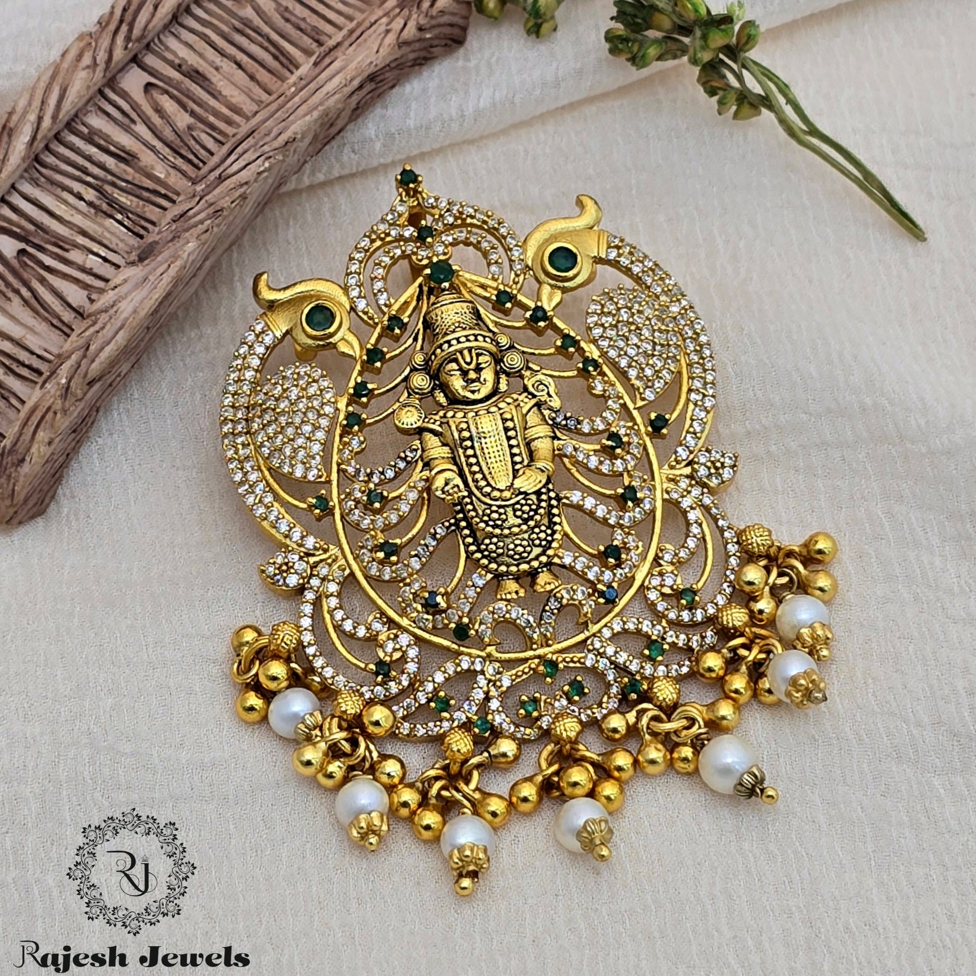 92.5 Pure Silver 22K Gold Plated Pendant Studded With Semi Precious Stones