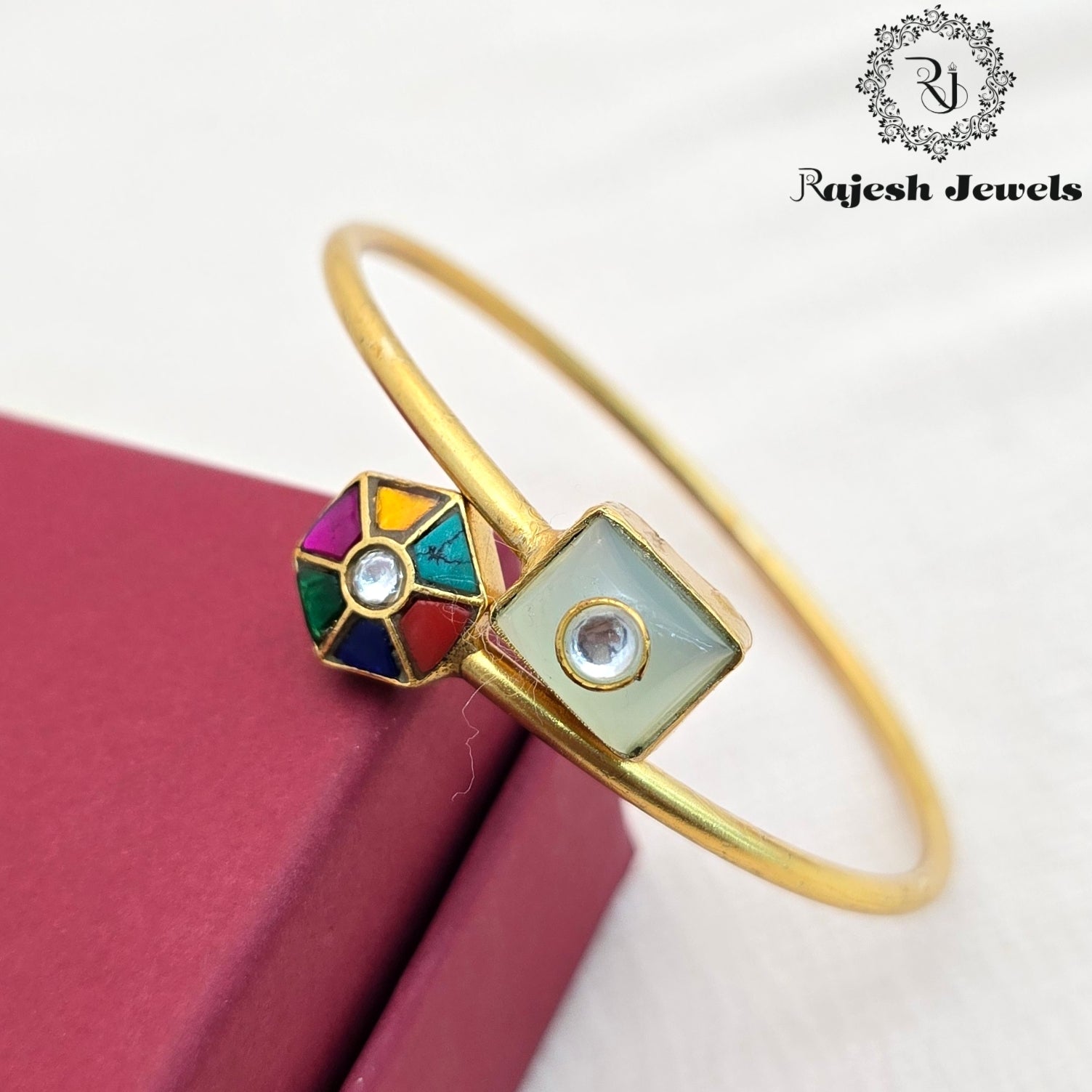 92.5 Pure Silver 22K Gold Polish Hand Kada Studded With Semi Precious