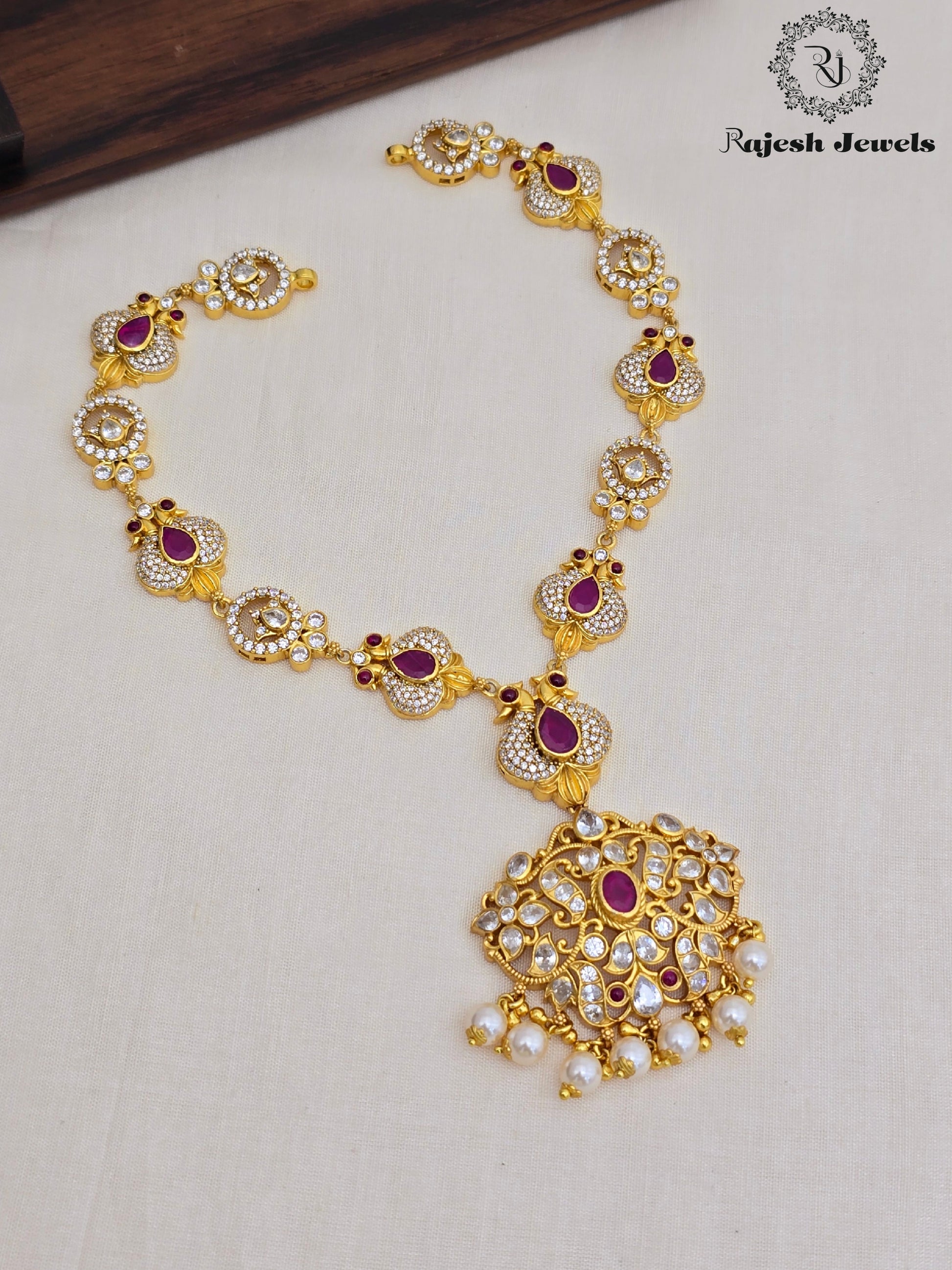 92.5 Pure Silver 22K Gold Plated Necklace Studded With Semi Precious Stone