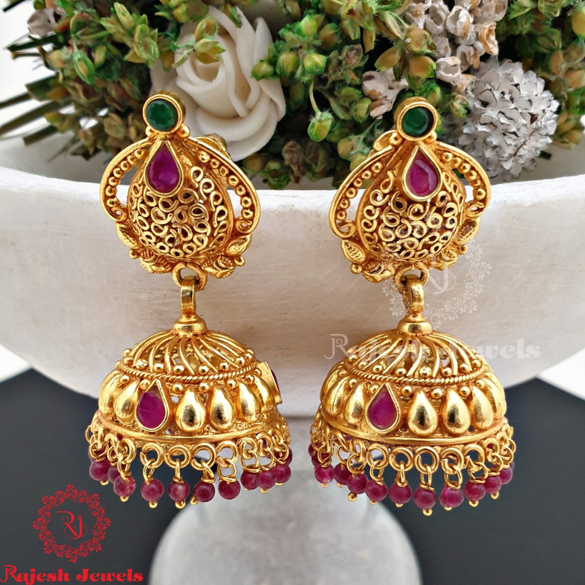 92.5 Pure Silver 22K Gold Plated Jumka Earrings Studded With Semi Precious Stones