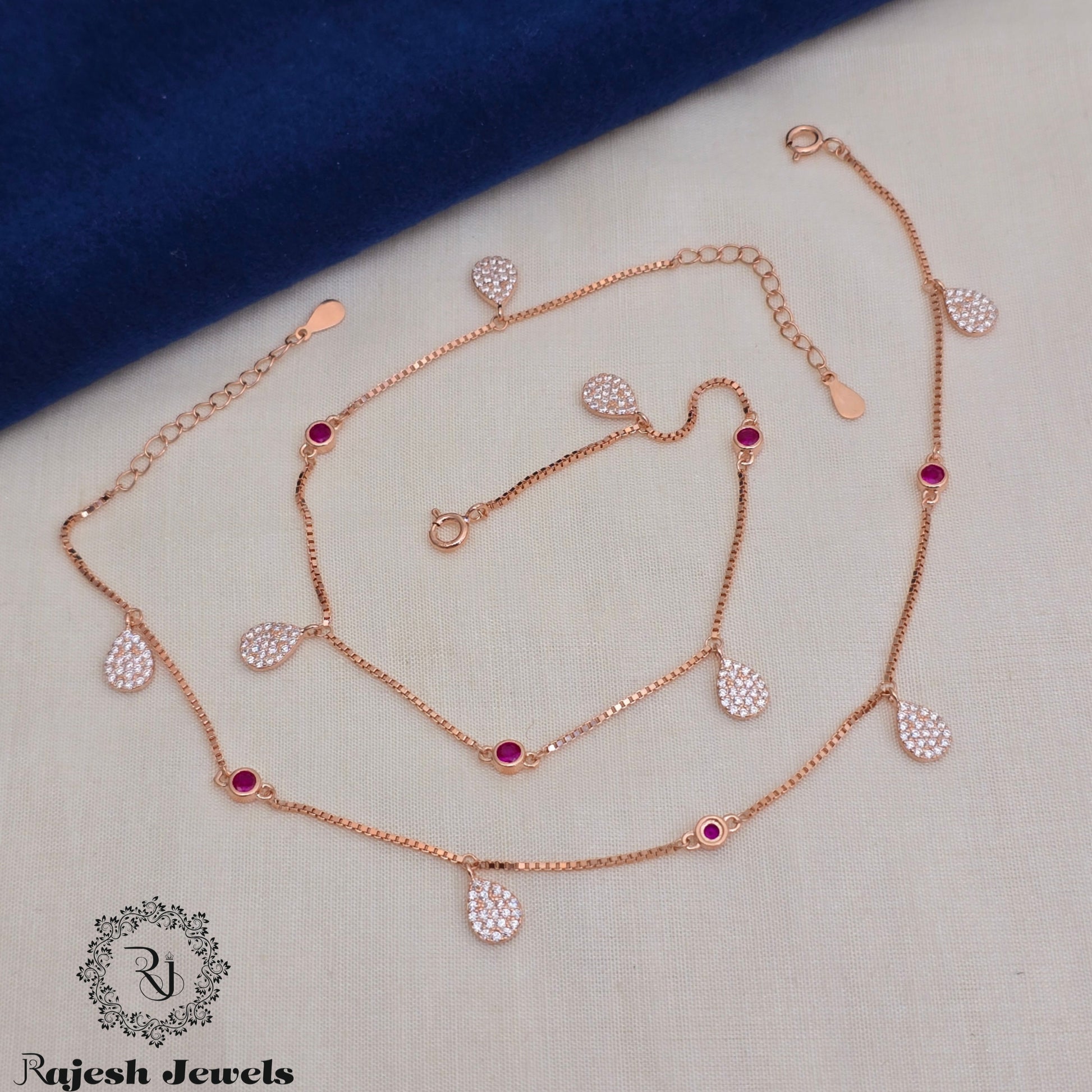 92.5 Pure Sterling Silver Anklets Studded With Semi Precious Stones