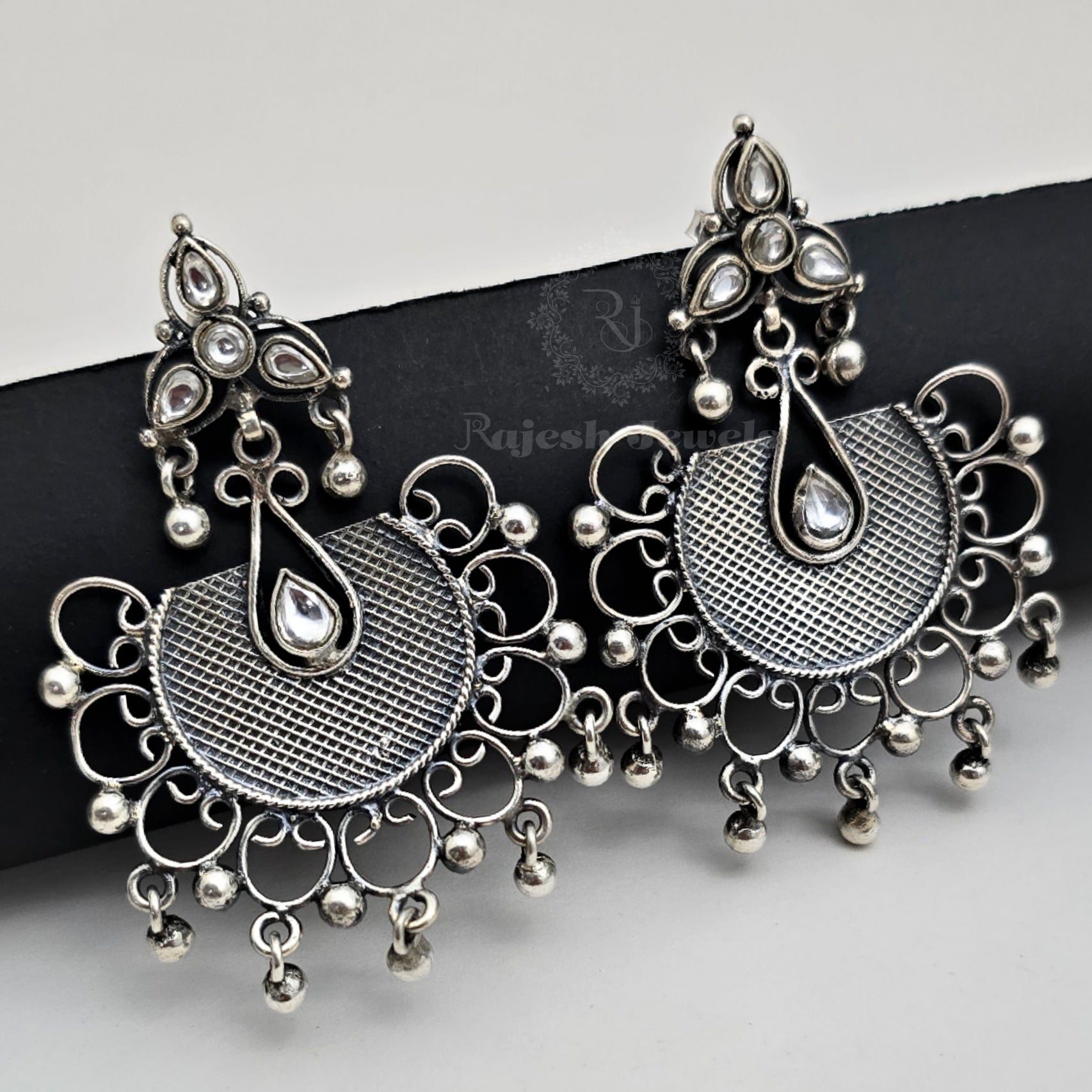 92.5 Pure Silver Oxidised Antique Finish Handmade Chandbali Earrings Studded With Semi Precious Stones