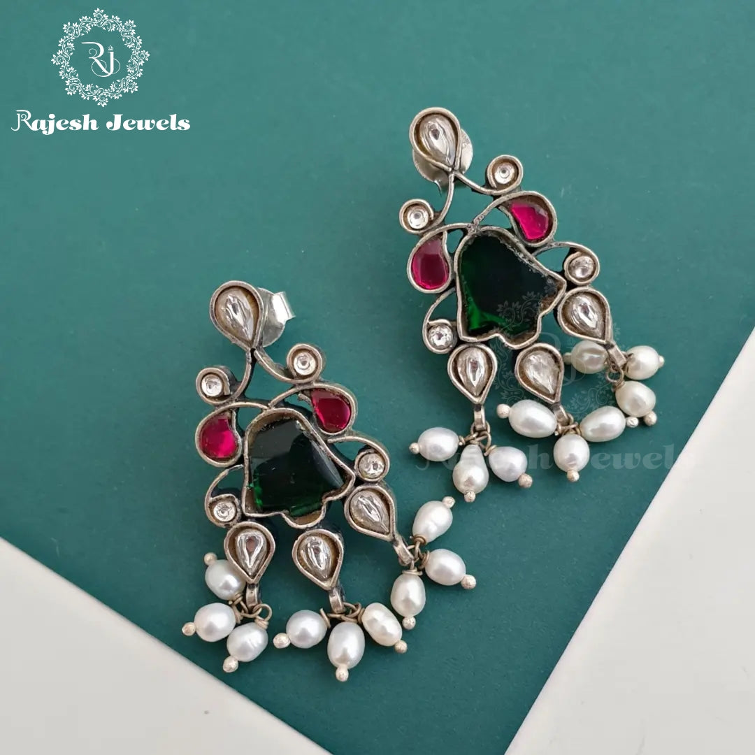 92.5 Pure Silver Oxidised Antique Finish Handmade Earrings Studded With Semi Precious Stones