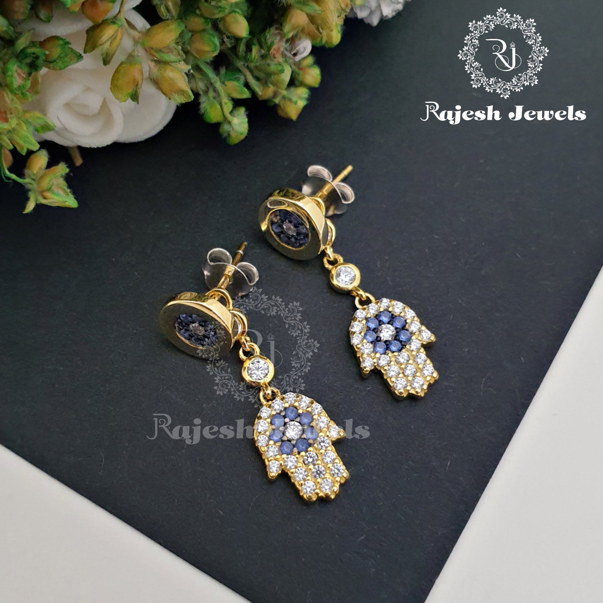 92.5 Pure Sterling Silver Hanging Earrings Studded With Semi Precious Stone.