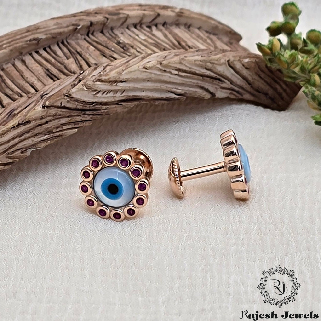 Evil-eye Cz Rosegold Silver Stud Earrings