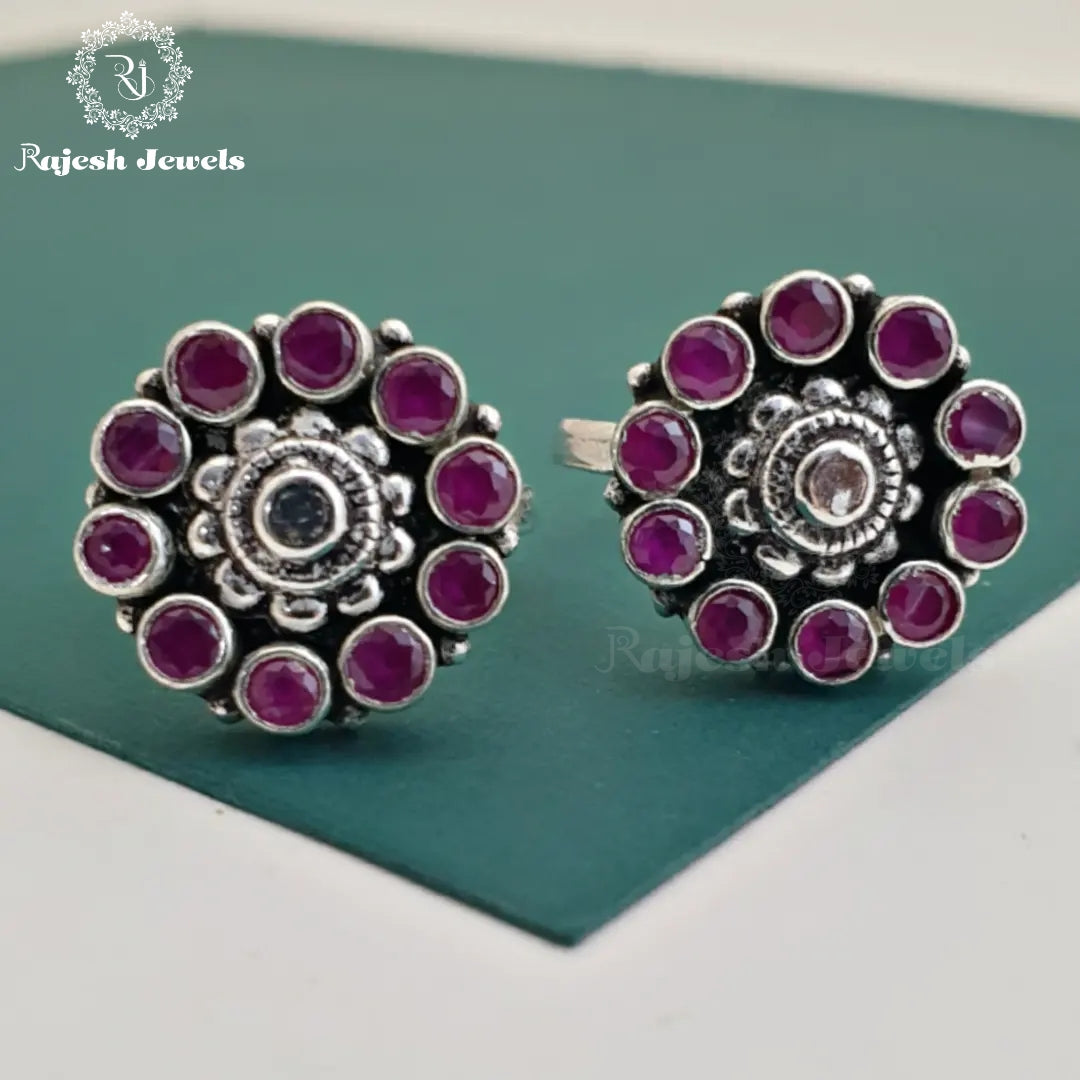 92.5 Pure Silver Oxidised Antique Finish Handmade Toerings Studded With Semi Precious Stones