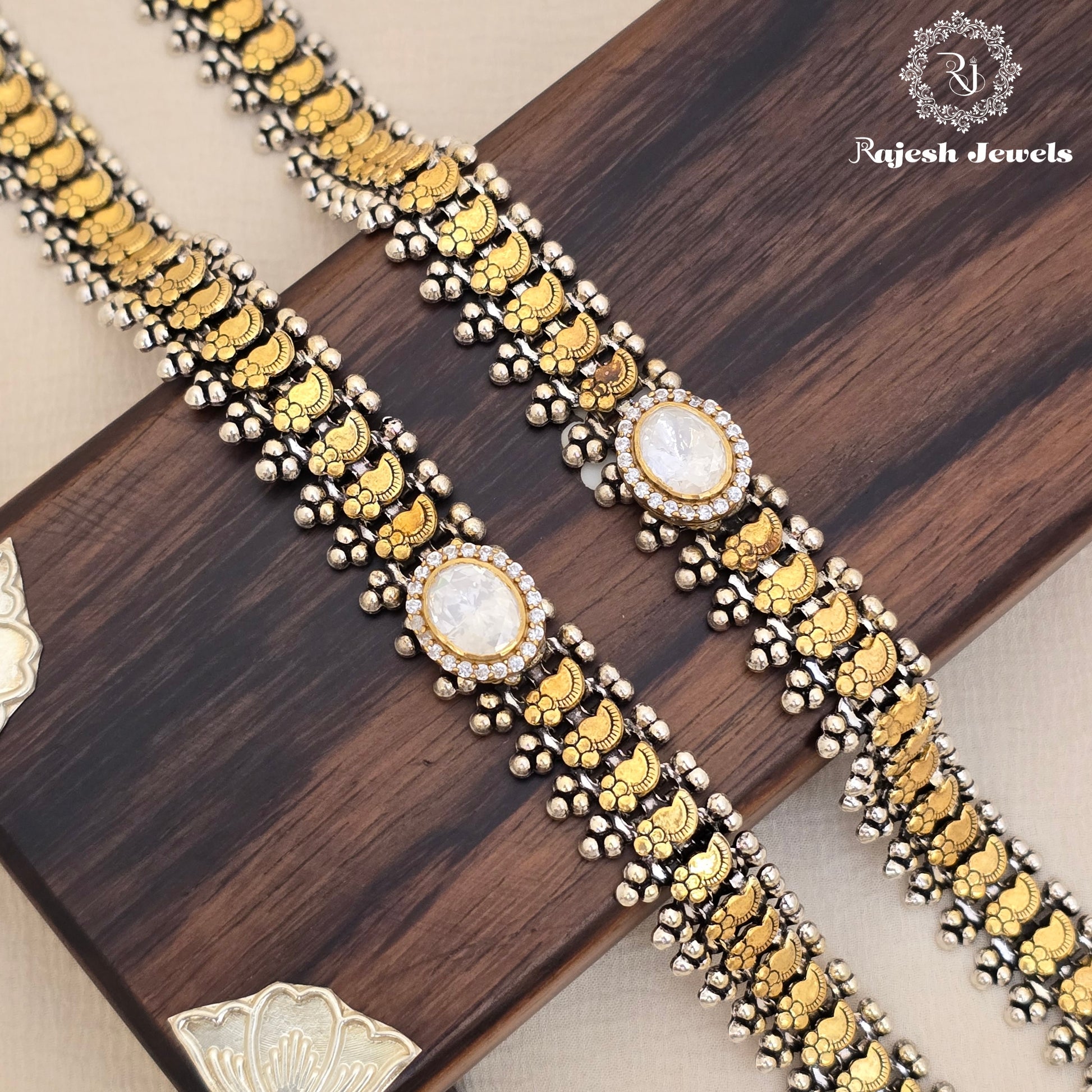 92.5 Pure Silver Oxidised Antique Finish Handmade Anklet Studded With Semi Precious Stones