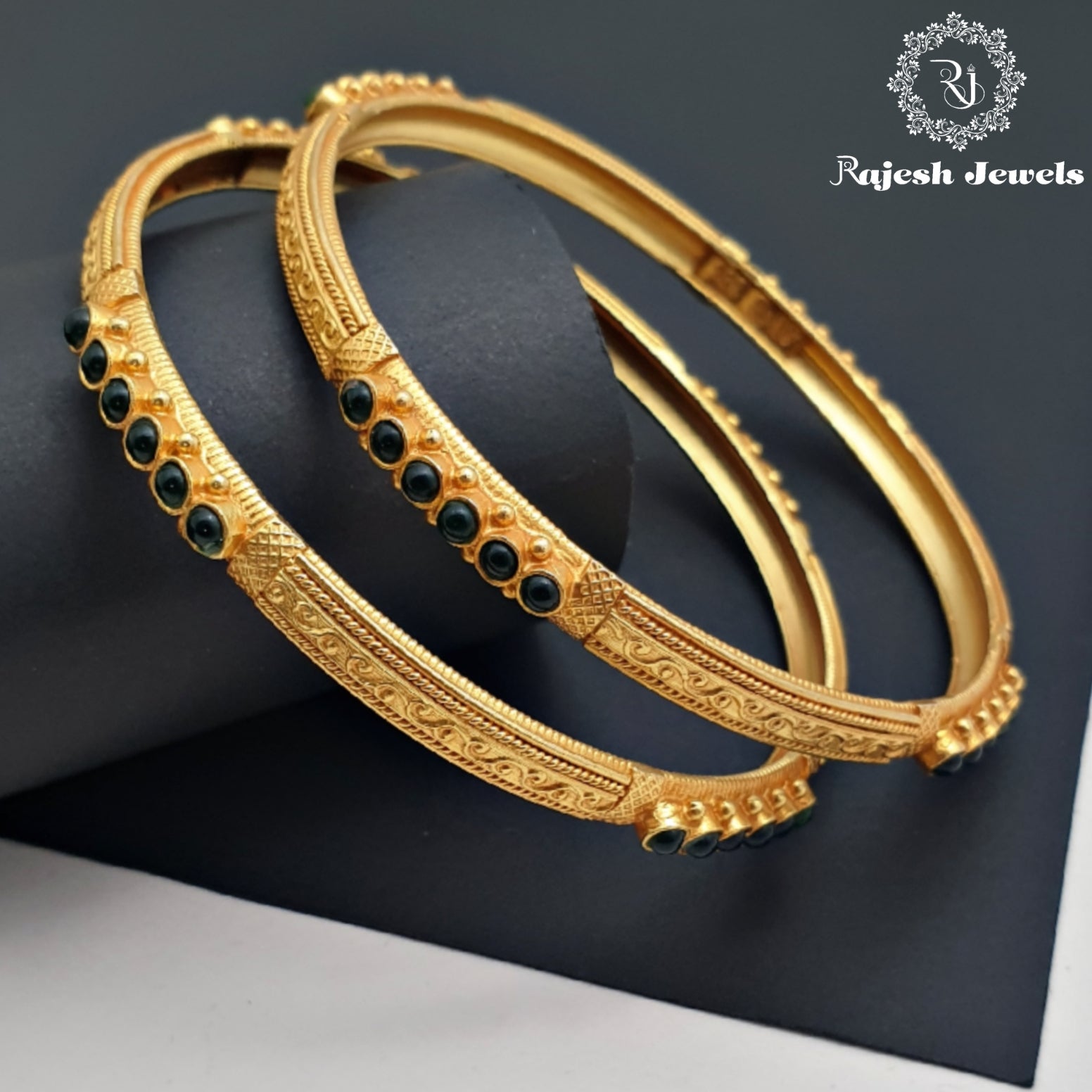 92.5 Pure Silver 22K Gold Plated Handmade Bangles Studded With Semi Precious Stones