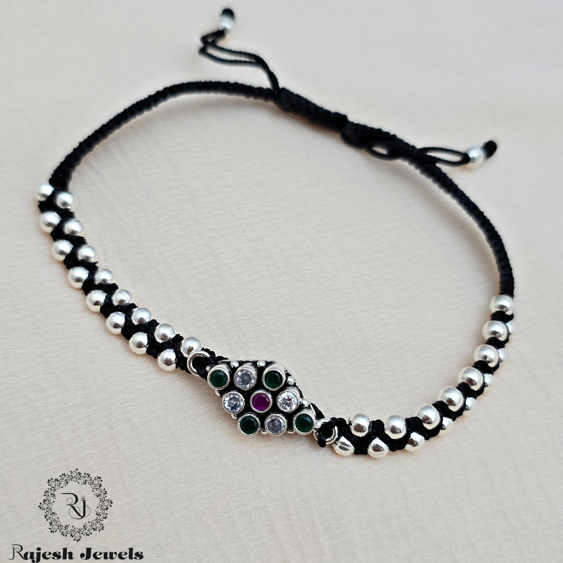 92.5 Pure Silver Oxidised Antique Finish Handmade Cutstone Nazariya Anklet