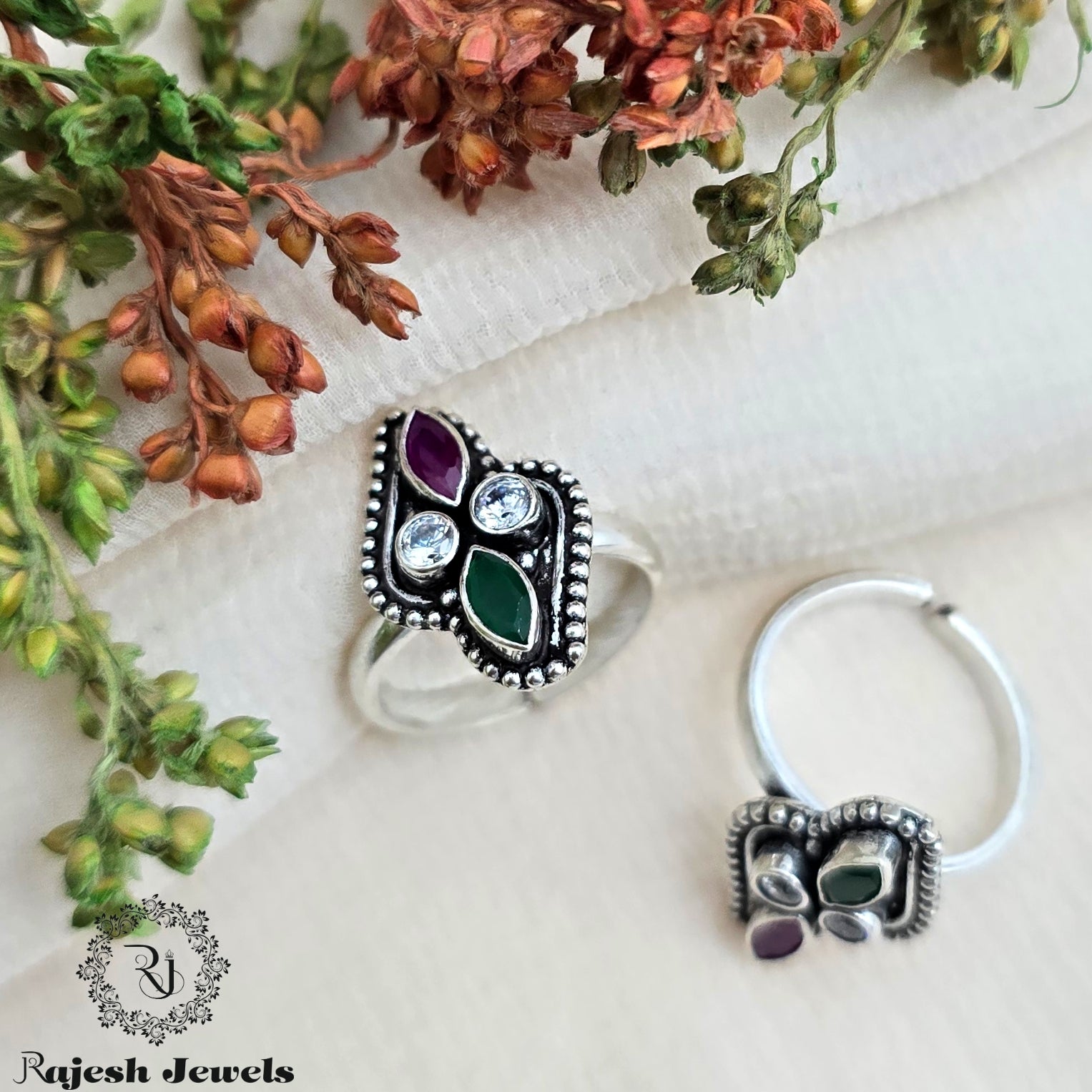 92.5 Pure Silver Oxidised Antique Finish Handmade Toerings Studded With Semi Precious Stones